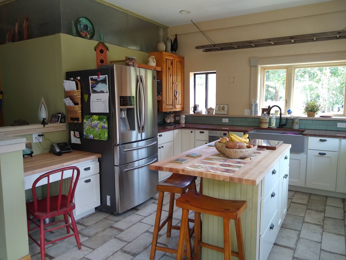 Kom logeren in het prachtige SW Colorado. Deze charmante boerderij ligt op slechts 20 minuten van het historische centrum van Durango en op 15 minuten van de luchthaven en is voor iedereen! Er is gemakkelijke toegang tot het centrum van Durango, inclusief de trein, winkels en lokale restaurants. Dit huis ligt op een werkende ranch aan het einde van een rustige provinciale weg en biedt rust en sereniteit. Geniet van een ongeëvenaard uitzicht op de bergen en de glooiende hooivelden vanaf de patio. Geniet van de sterren zoals je ze nog nooit hebt gezien!