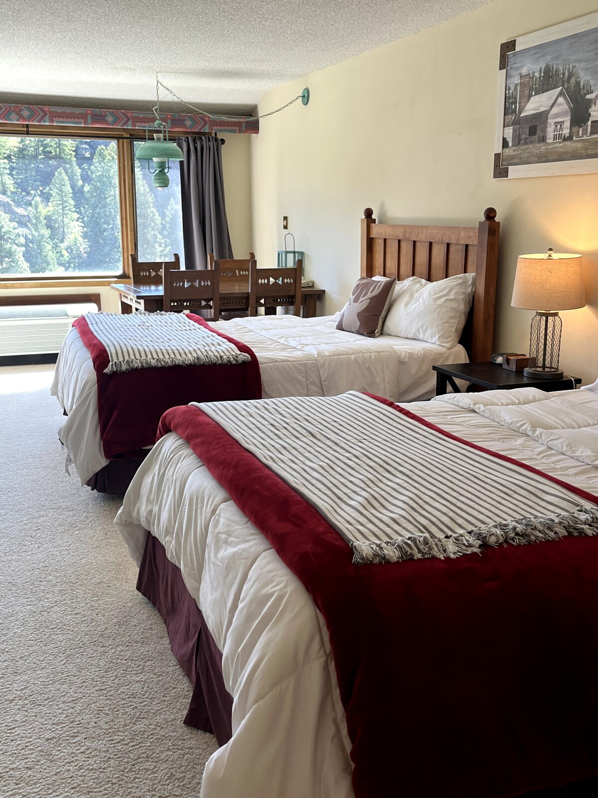 Rustieke/moderne inrichting. Zacht, sfeer, nachtkastje en wastafelverlichting met voldoende natuurlijk licht. Bureau met lamp, oplaadstation met USB-poorten. Buitenbadkamer en een grote inloopdouche. Gloednieuwe alles! Net gerenoveerd en heel mooi. Slechts enkele minuten verderop van het historische centrum van Pagosa, warmwaterbronnen, restaurants/eetgelegenheden, het rivierwandelpad. Bar op het terrein, meerdere kamers. Geniet van het uitzicht op de bergen vanuit de accommodatie en de meeste kamers.