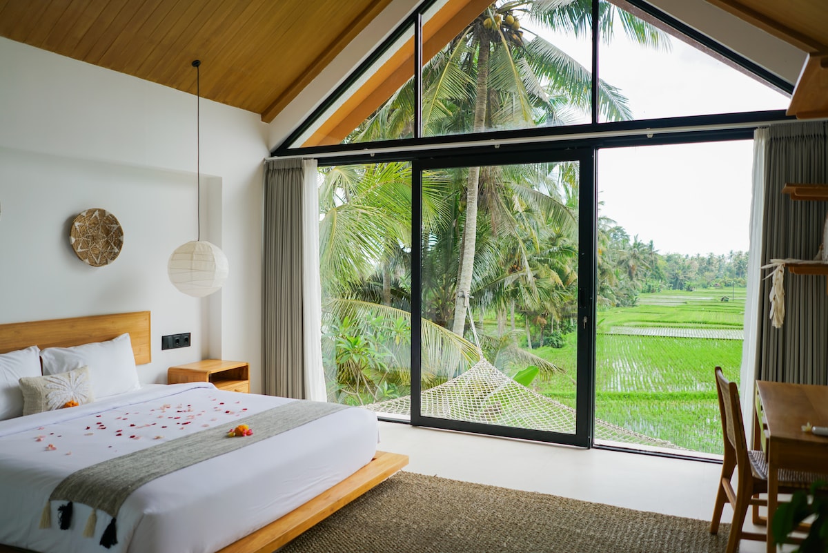 Gloednieuwe houten Gezellige mooie villa met een prachtig uitzicht op het rijstveld in het hart van weelderige rijstvelden van Ubud. Biedt je een onvergetelijke vakantie en verblijf, omgeven door een rustgevende groene uitgestrektheid en een adembenemend uitzicht op rijstvelden. Je wordt verwelkomd door een rustige en groene sfeer van het rijstveld van Ubud. Ruime kamer en direct met uitzicht op de rijstvelden, zodat je vanuit huis kunt genieten van de schoonheid van de natuur. Elegante houten inrichting en natuurlijk gevoel creëren een warme en gezellige sfeer.