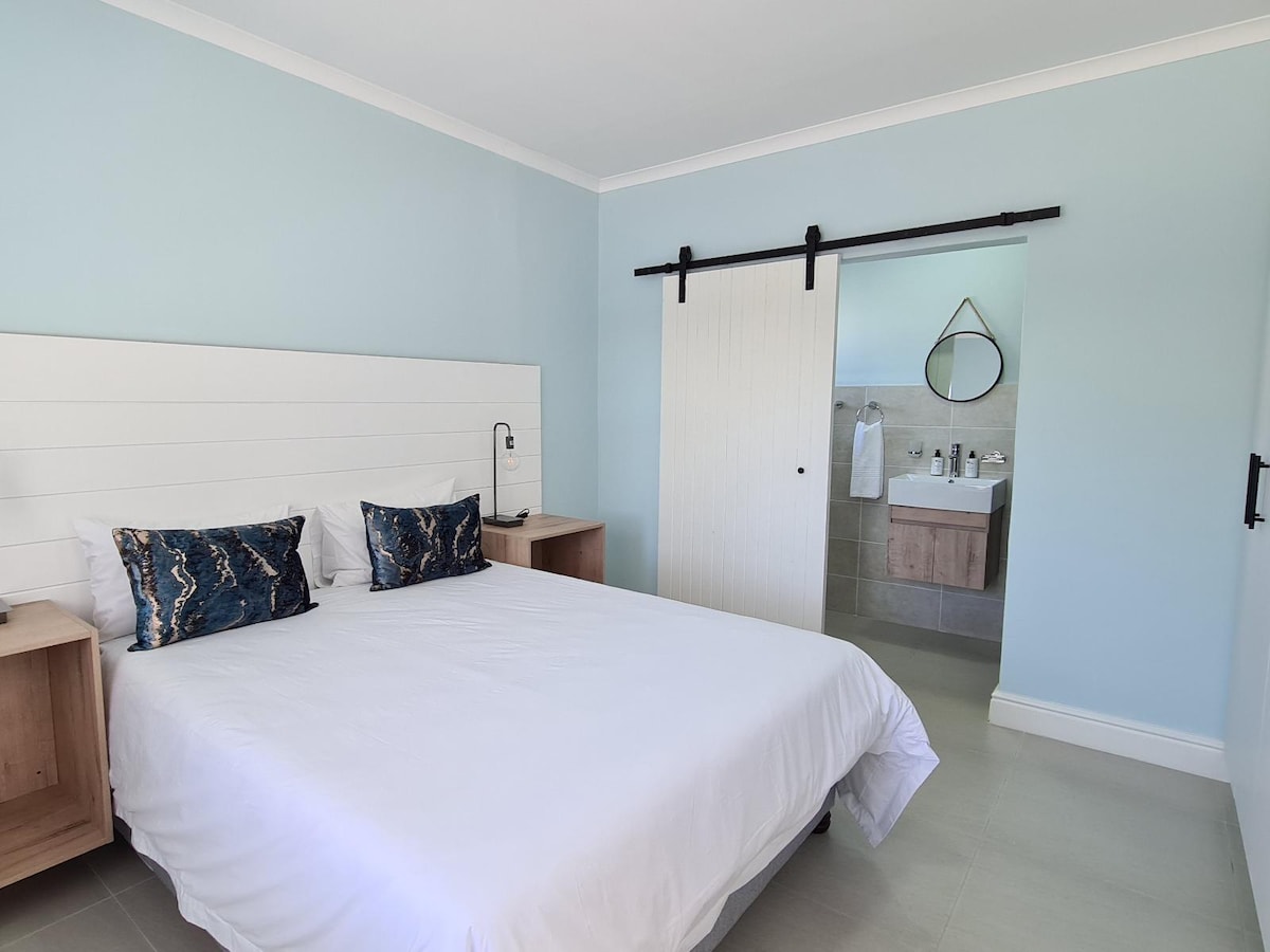 Eigen appartement met één slaapkamer en airconditioning. Een perfecte schuilplaats met alle essentiële apparaten zoals Weber Braai, Nespresso-compatibel koffiezetapparaat, airfryer en wasmachine. Comfortabel linnengoed. Gelegen in een rustige buitenwijk op slechts 2,5 km van Hemingways Mall en Abbotsford Village restaurants en supermarkten. Garanderen voor middelgrote auto's op het terrein. Onze gasten komen keer op keer terug.