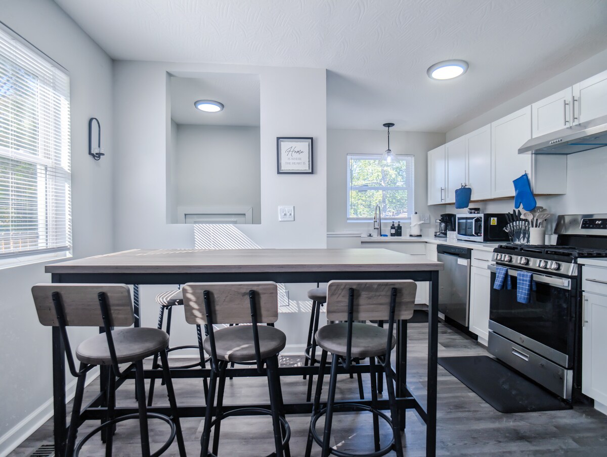 Welkom in je thuis weg van huis in Columbus. Deze woning is liefdevol gerenoveerd met high-end upgrades, waaronder een moderne keuken en bijgewerkte badkamers. Het huis ligt op slechts een paar minuten van de luchthaven, op slechts een klein eindje rijden van prachtige parken, belangrijke bezienswaardigheden en alle beste restaurants van de stad. 3 minuten rijden naar de luchthaven 7 minuten rijden naar Franklin Park Conservatory 9 minuten rijden naar Nationwide Arena 11 minuten rijden naar Easton Town Center 12 minuten rijden naar German Village
