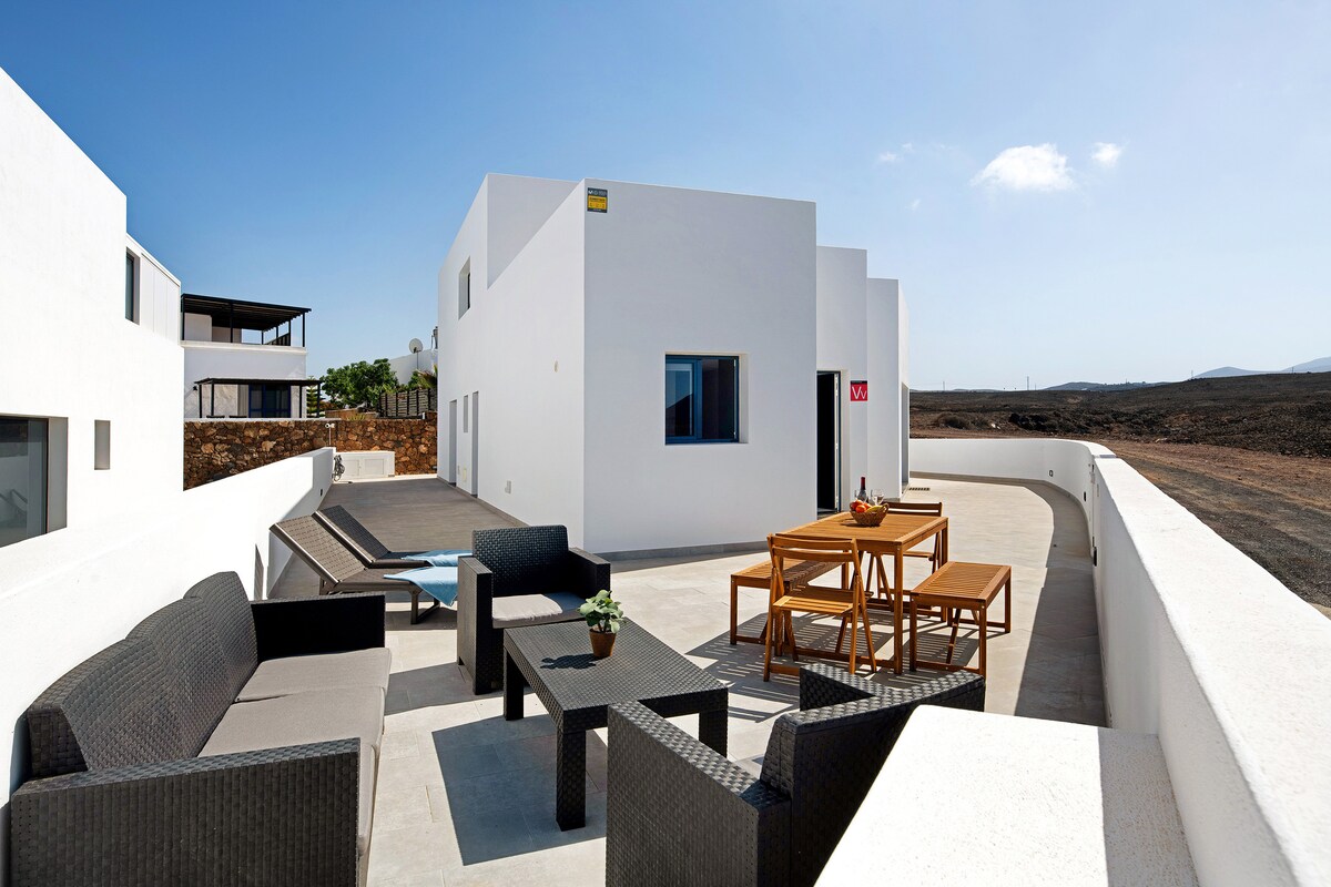 Verblijf in een van de twee charmante moderne hippie-appartementen van 80 m² met een uniek uitzicht op het Timanfaya National Park en zijn vulkanen. Het appartement beschikt over een volledig uitgeruste keuken, een woonkamer met panoramische schuifdeuren en een slaapbank, HDTV, glasvezelinternet en een slaapkamer met een badkamer in Canarische stijl. Ontspan op je eigen terras, dompel je tenen onder in het zoutwaterzwembad van César Manrique, geniet van de eindeloze vergezichten en bewonder de magische zonsondergangen. 🩵