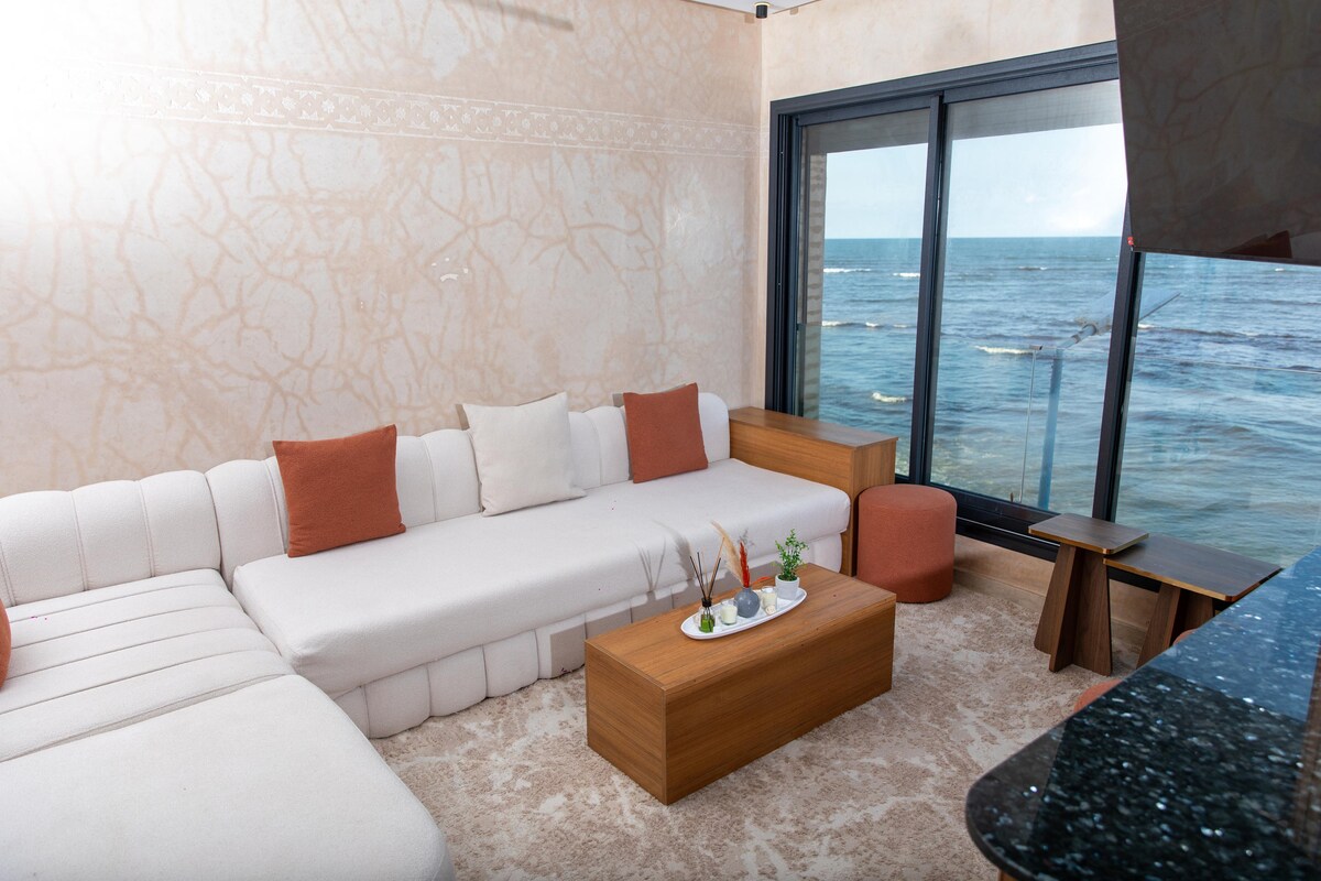 Nieuw appartement aan het strand met een spectaculair uitzicht op zee en 2 balkons. Een mooie werkplek met 100 Mbps WiFi internet over glasvezel. Gelegen in het centrum, Medina, Souks, restaurants en de Portugese stad liggen op 15 minuten lopen. Het stadsstrand ligt op 20 min lopen. PRM denk aan een taxi. Goed uitgerust en zorgvuldig ingericht voor een gezellig comfort en een onvergetelijk verblijf. Geniet van de zonsopgang, het schilderachtige uitzicht, de clapotis of de rust. Netheid, beschikbaarheid en hulp zijn gegarandeerd. Je zult je thuis voelen.