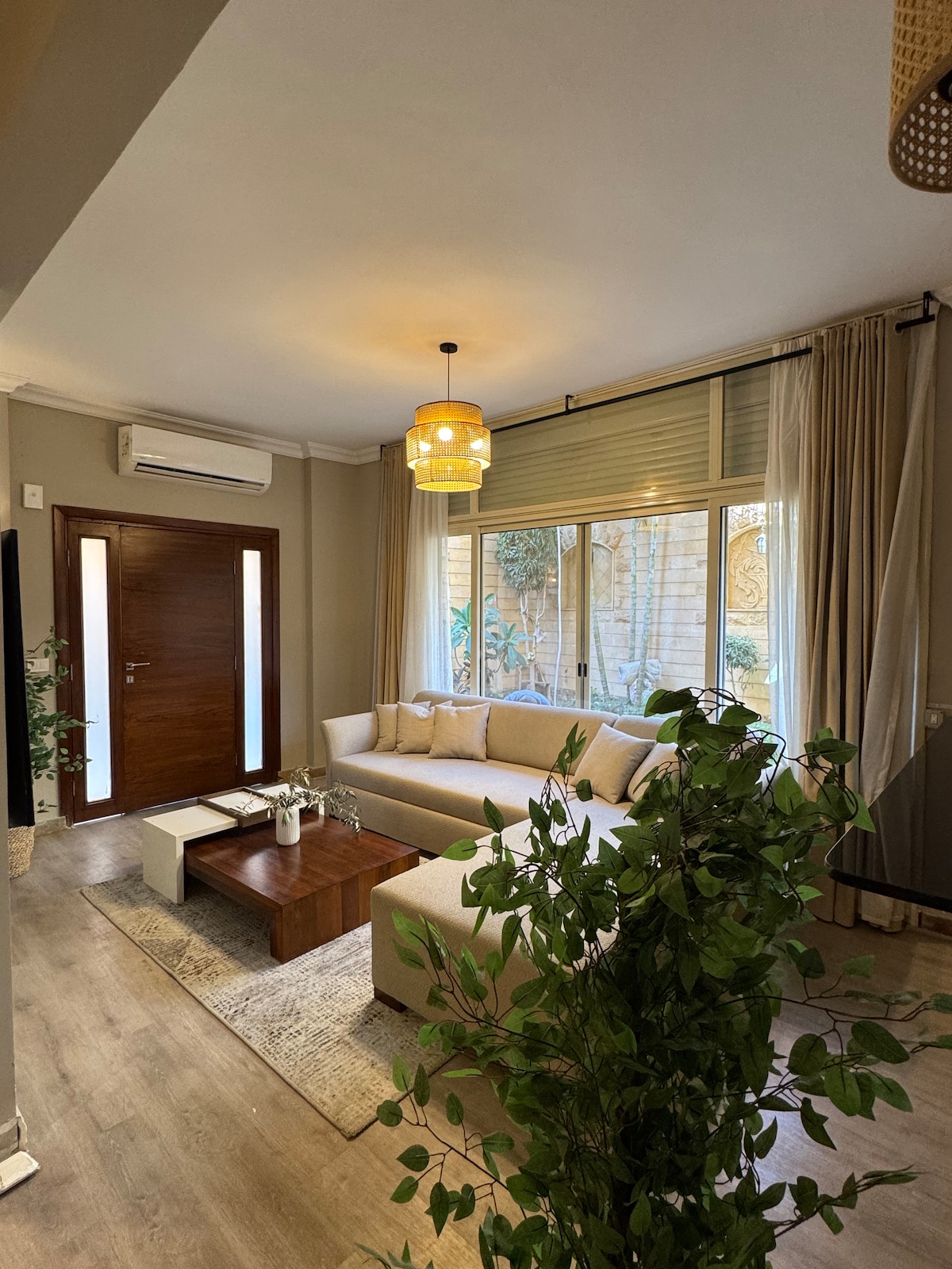 Welcome to Natura Rehab, where luxury meets nature in the heart of Rehab City. Our apartment is thoughtfully designed to offer the warmth of a home with the comfort of a 5-star hotel. Furnished with all-new natural wood, it exudes elegance and serenity. Enjoy air conditioners in every room for year-round comfort. Located right in front of the banks and steps from Souq El Sharky, everything you need is at your doorstep.