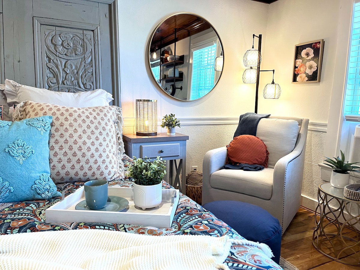 Dit gezellige toevluchtsoord is een vrijstaand privé-appartement in een rustige buurt op slechts enkele minuten van het centrum. De ruimte heeft een eigen ingang met een patio, queensize bed, Roku TV, Alexa, kitchenette en een eigen badkamer. De kitchenette is voorzien van een minkoelkast, 2-pits kookplaat, magnetron, broodrooster en een koffiezetapparaat. Of je hier nu bent voor een snel weekendje weg, langere vakantie of een bezoek als reizende professional, je zult merken dat deze ruimte je Pensacola-ervaring zal verbeteren