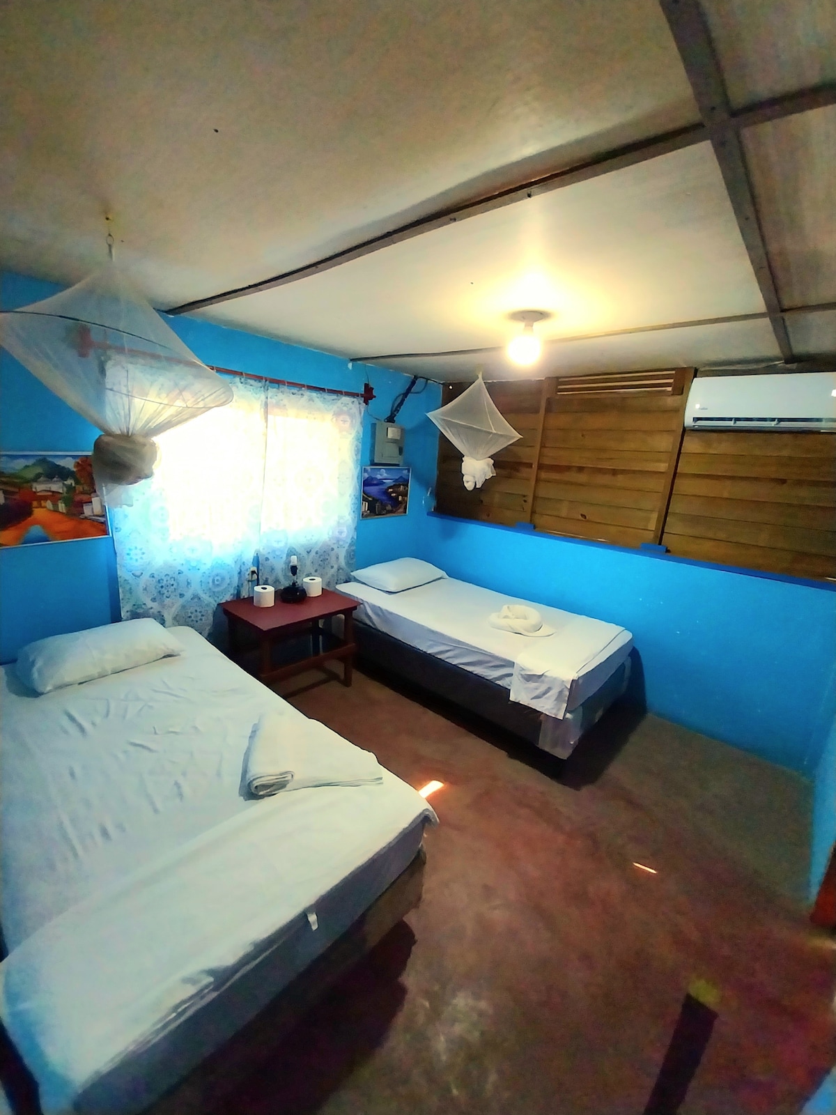 We hebben 3 prachtige kamers met een eigen badkamer, airco, Smart TV en balkon. Hab. #1A: 2 tweepersoonsbedden voor 4/p. Hab. #2A: 1 queensize bed voor 1 of 2/p. Hab. #3A: 2 queensize bedden voor 4/p. We hebben een ruimte met tafels, stoelen en grill die zonder extra kosten kan worden gebruikt. Het strand ligt op 200 m van het hotel, u kunt lopen als het getij het toelaat of door middel van een betaalde boot in een 3 minuten durende reis. Je kunt baden op het openbare strand of in de bocabarra.