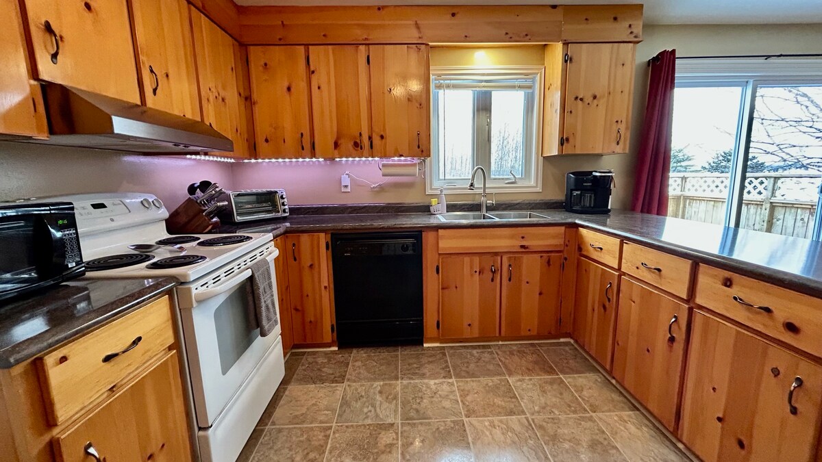 Geniet van dit prachtige moderne open concept-huis, genesteld tussen de bergen en de oceaan in het pittoreske Rattling Brook. Een uitzicht op de oceaan vanuit elk raam. Minuten van alle voorzieningen zoals restaurants, slijterij, supermarkt, cadeauwinkels, gemeenschappelijke bootlancering, 3 prachtige wandelpaden met verschillende moeilijkheidsgraden. Huisdiervriendelijk met borg. 2 slaapkamers, een kingsize bed, een queensize bed met tv/wifi . 2 badkamers. Volledige keuken. Wasmachine/droger. Barbecue .2 dekken.