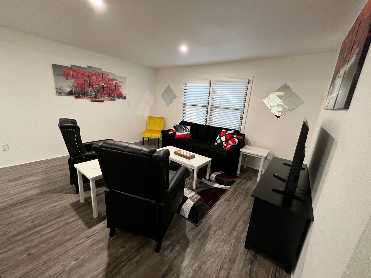 Deze kamers met een keizerlijk thema hebben een gloednieuw kingsize schuimbed, schone ruimtes en comfortabele accommodaties. Dit duplexappartement met twee slaapkamers in de buurt van de Shoppes at North Village biedt je een rijke buurt tegen betaalbare prijs. Dit is een geweldige plek om te verblijven voor een medische professional of een gast voor de lange termijn. Multi-month gasten hebben de ruimte vaak bezet en zijn enthousiast over het gemak en comfort. Deze ruimte bevindt zich bovenop een volledig aparte Airbnb-advertentie.