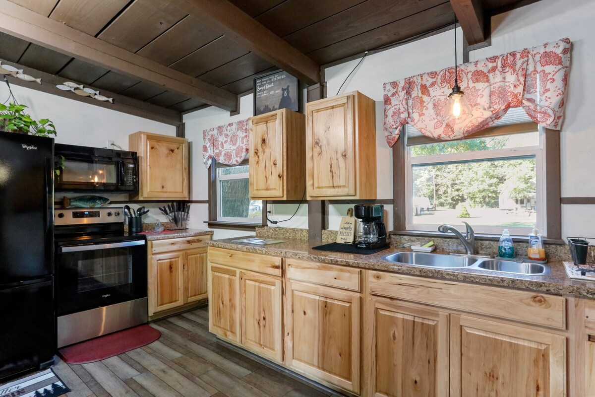 Deze charmante tiny house biedt de perfecte mix van gezellig comfort en het buitenleven, allemaal terwijl het dicht bij het Whitetail Resort ligt. Binnen is een open ruimte die baadt in natuurlijk licht, waar moderne stijl ontmoet bergkalmte. Het interieur, met zijn zorgvuldig ontworpen kenmerken, is voorzien van een comfortabele loveseat, een smart-tv en een bar: perfect voor die intieme gesprekken of gewoon bijpraten na een drukke dag op de paden.