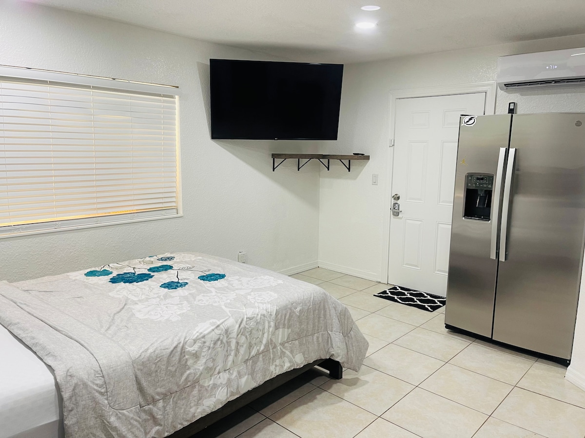 Neem een pauze en ontspan in deze rustige oase. Deze stijlvolle plek om te verblijven is perfect voor twee personen. (luchtbed beschikbaar op aanvraag als er een 3e gast is). Slechts 7 minuten verwijderd van het centrum van St. Pete, 15 minuten van Tia, 20 minuten van st pete beach , . Deze ruime studio is gemaakt voor jou en je familie met alle voorzieningen die nodig zijn voor een ontspannen vakantie. Het beschikt over een queen size bed en een onlangs gerenoveerde badkamer, een nieuwe keuken. Er worden geen feestjes toegestaan. 🚭 Roken is niet toegestaan