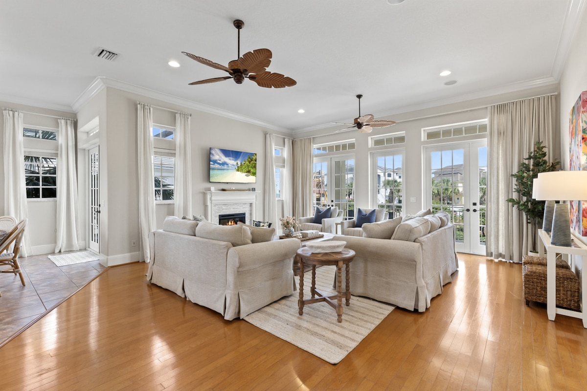 Welkom in ons huis aan de Palm Coast! Stap door de voordeur om een binnenplaats in mediterrane stijl te vinden met geplaveide vloeren, sierlijke zuilen, tropische planten, een zwembad en een tropische bar. Binnen beschikt de woning over kathedraalplafonds, een unieke open haard, eclectische inrichting en samengestelde kunst, waardoor het de huiselijke sfeer heeft waar je naar verlangt vermengd met de luxe die je wenst op vakantie. Welkom bij Casa del Sol!