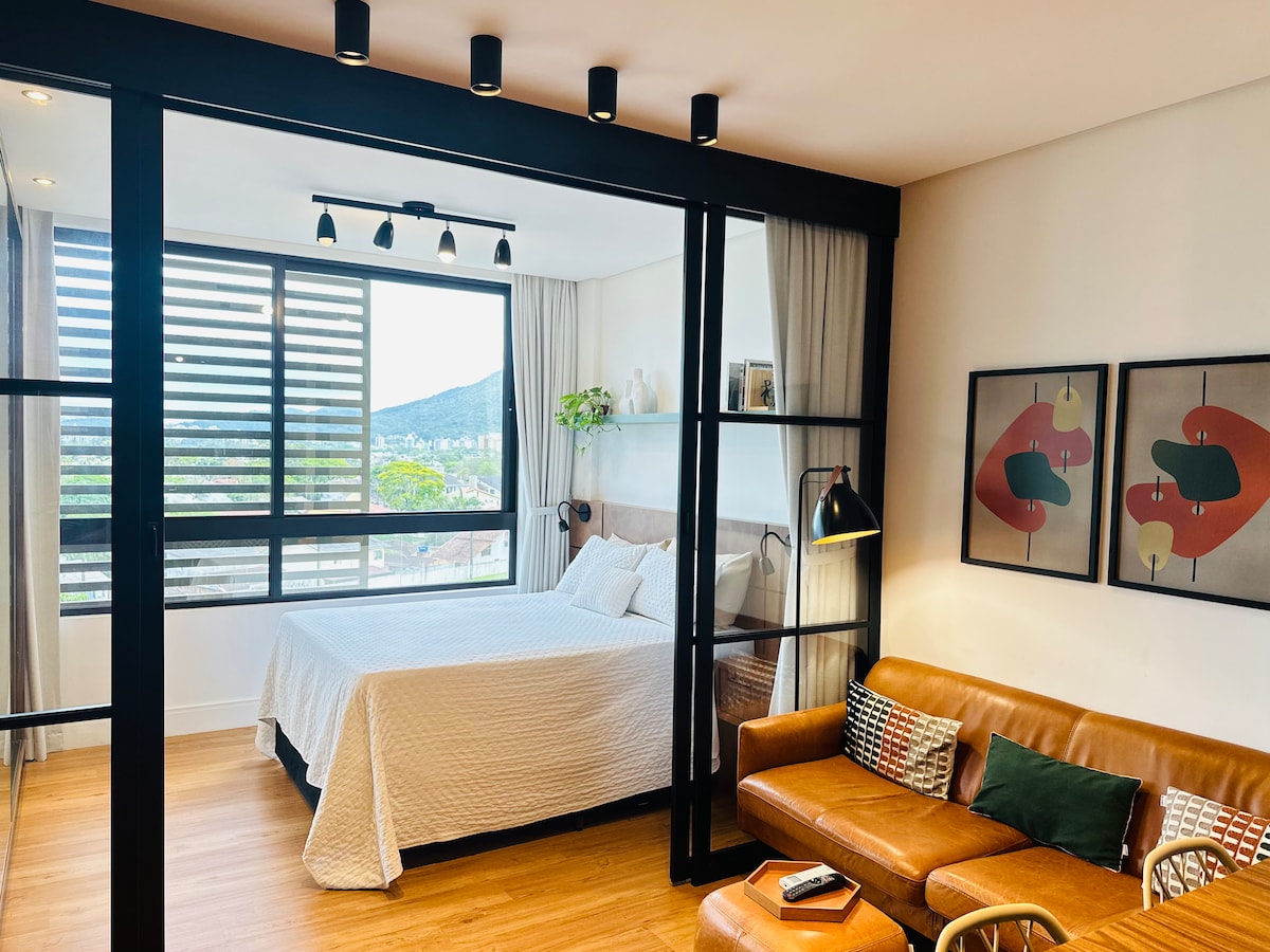 Nieuwe studio! Architectonisch ontwerp met comfortabel en functioneel ontwerp. Stabiel en krachtig internet, perfect om te werken en plezier te hebben op dezelfde plek, 400 m van de zee. Op maat gemaakte meubels, nieuwe apparaten, ontworpen voor je economie en functionaliteit, airconditioning, warm water in alle kranen, wasmachine-droger, 43-inch tv, Dolce Gusto koffiezetapparaat, ClaroTV, Disney en Netflix. Familiegebouw, rustig, met zwembad en garage. Een verblijf in Florianopolis dat precies bij je past, voor werk of ontspanning.
