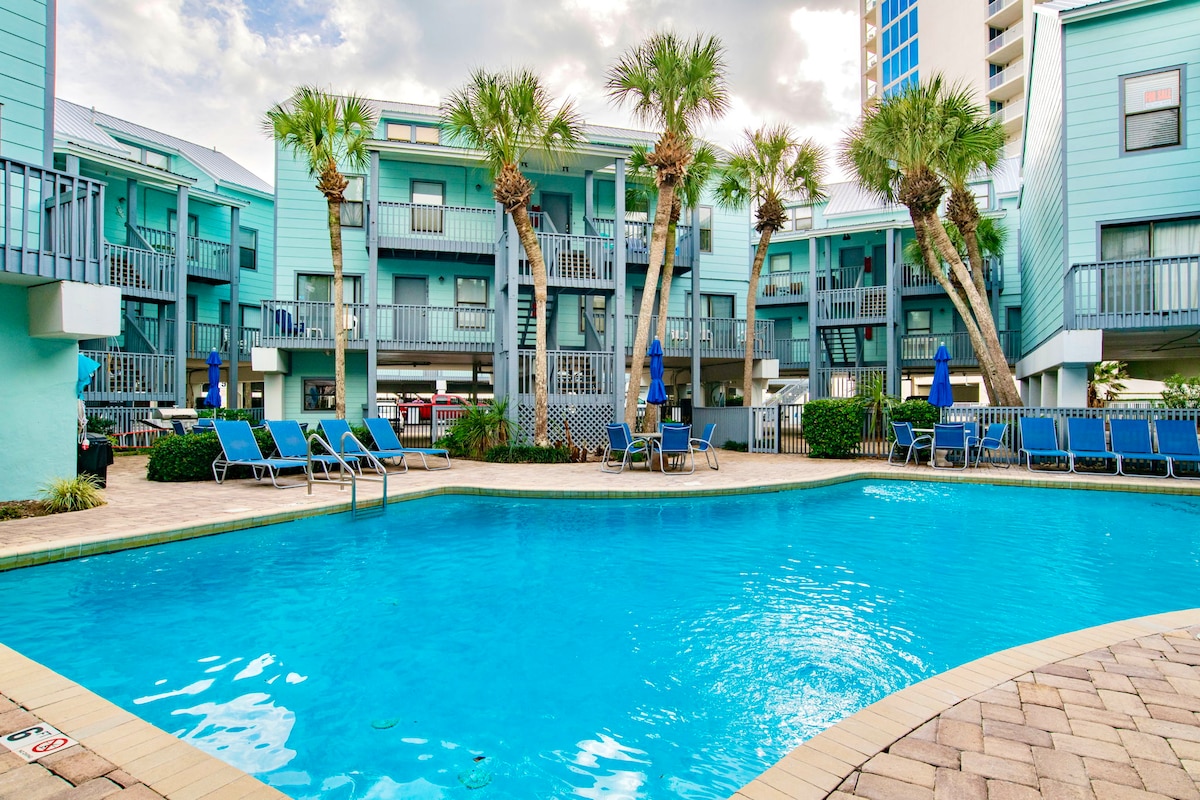 Make lasting family memories at our beachfront Gulf Shores condo, where the sand and surf are just steps away! This bright, coastal retreat features two comfy bedrooms, a fully equipped kitchen, and a private patio with sweeping Gulf views. Spend your days building sandcastles, swimming in the pool, or relaxing in the hot tub. Walk to nearby restaurants, ice cream shops, and fun local attractions—everything you need for the perfect family beach getaway!