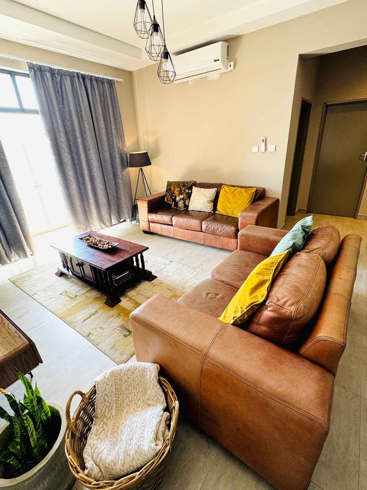 Uitpakken. Ontspannen. Adem uit in 2li Luxe. Gelegen in Habitat Kappa, een privélandgoed met toegangscontrole op slechts een steenworp afstand van het winkelcentrum Sarona. De open indeling vloeit natuurlijk van een zonovergoten woonkamer naar een volledig uitgeruste keuken, compleet met hoogwaardige apparaten en een luxe touch voor jouw comfort. Geniet van zelf inchecken, snelle Starlink WIFI, grote smart-tv, rustige slaap op een kingsize bed en elektrische verduisteringsgordijnen, gratis beveiligde parkeergelegenheid en 24/7 beveiliging.
