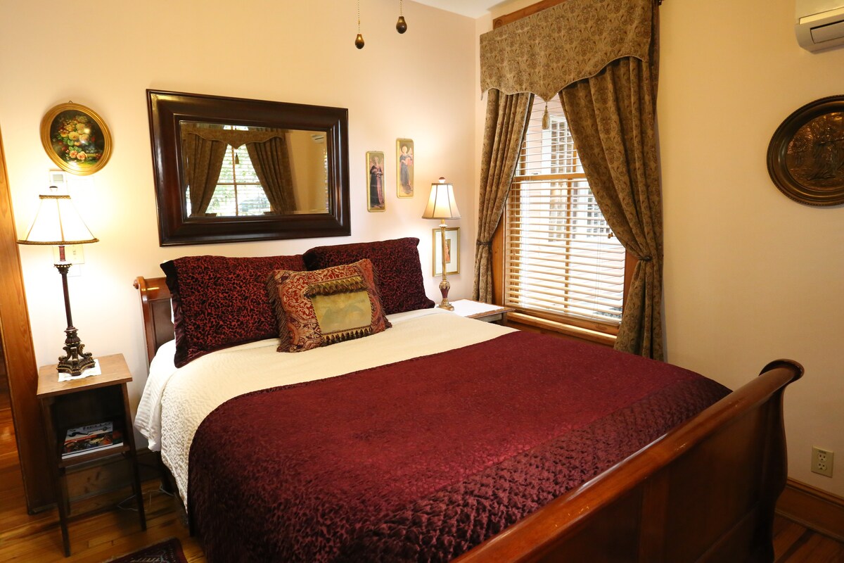100% Private everything! Hanes Haus, historic Main St. Shops, spas, tea room, dining, etc. Close to I-75. TOTU 4 mi. Dwntn Gainesville 15 mi. Near 4 Springs. Dine in room or alfresco. Qn bed, huge bathfm w/18ft skylight over soaker tub. Well Equipped kitchenette + coffee, tea, oats. QUIET AC. Fanimation fan/light. Electric fireplace, Smart TV(remotes for all!) Ded. WIFI, ADA ramp. Wheel luggage car to room all flat. 1/2 acre fenced property. View car from room. Safe Norman Rockwell-ish street!