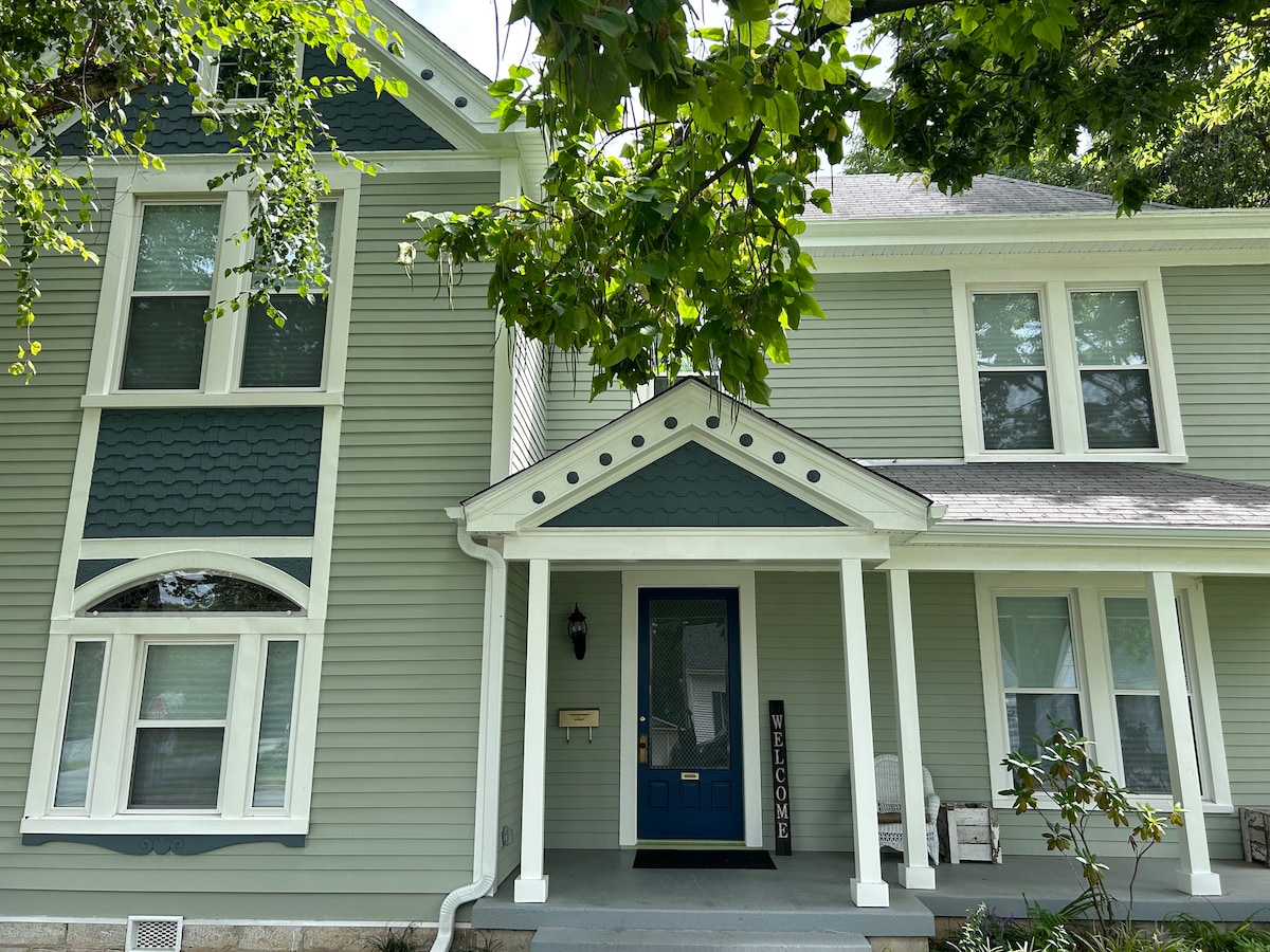 Waar elegant vintage en modern design samenkomen. Kom genieten van dit historische huis in een rustige straat in het centrum van Georgetown. Je bevindt je op loopafstand van winkels, restaurants, Georgetown College en parken. Thuis is ook een reis van tien minuten reizen naar het Kentucky Horse Park en de snelweg. Voorzien van een volledig gevulde keuken, volledige eetkamer en een Loft kantoorruimte. Je kunt genieten van je eigen oase in de achtertuin met een ontspannend bubbelbad, vuurplaats, zwarte stenen grill en buitentelevisie.