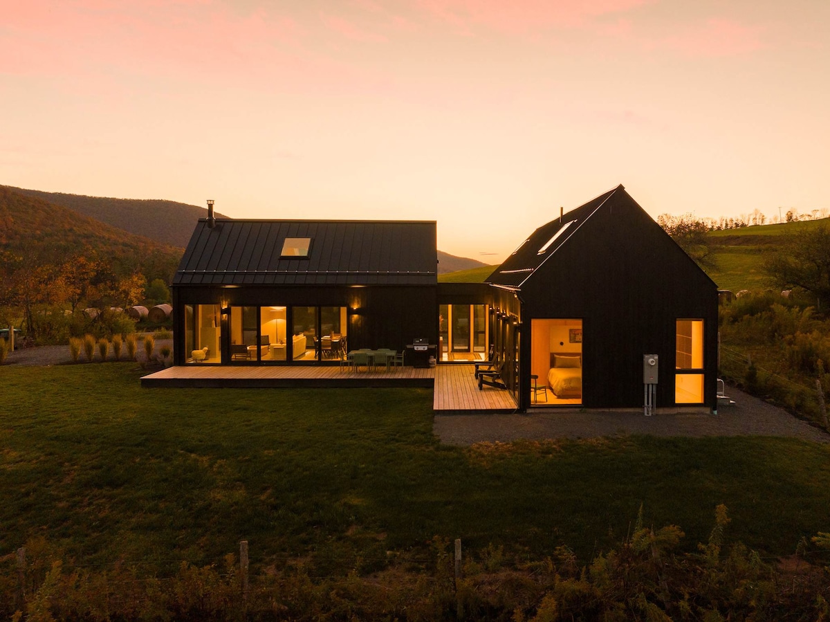 Een geweldige ontsnapping wacht op je op 12 hectare eigen grond. Als je liever een ontspannen vakantie wilt hebben of als je betrokken wilt raken bij lokale activiteiten (wandelen, fietsen, zwemmen, skiën, sneeuwschoenwandelen, sleeën), dan is dit jouw plek. Geniet van 360 graden uitzicht op de Catskill Mountains vanaf bijna elke plek op het terrein. Geniet van je ochtendkoffie terwijl je naar de zonsopgang op het grote dek kijkt. Speel in de grote privé tuin. Duidelijke avonden zijn het beste voor zonsondergangen, een vuurplaats en sterrenkijken.