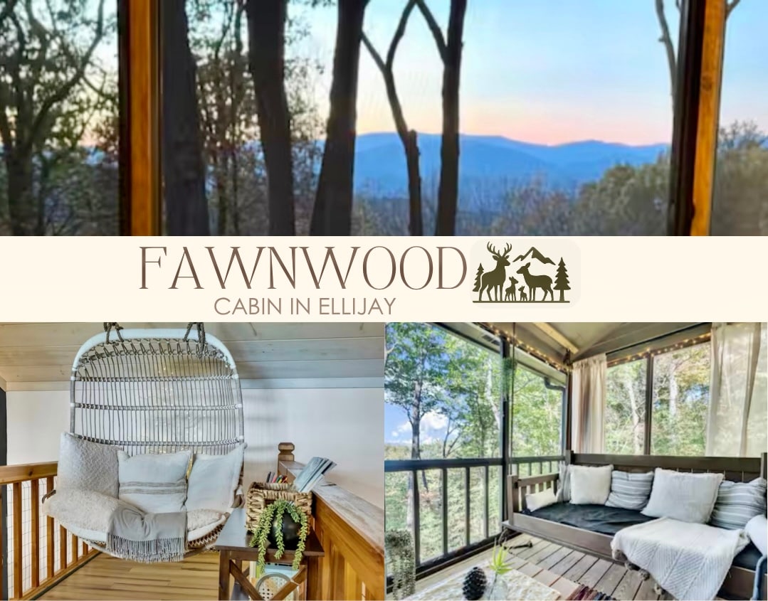 UITZICHT! Houten huisje met uitzicht op de bergen in de buurt van Ellijay met bubbelbad!