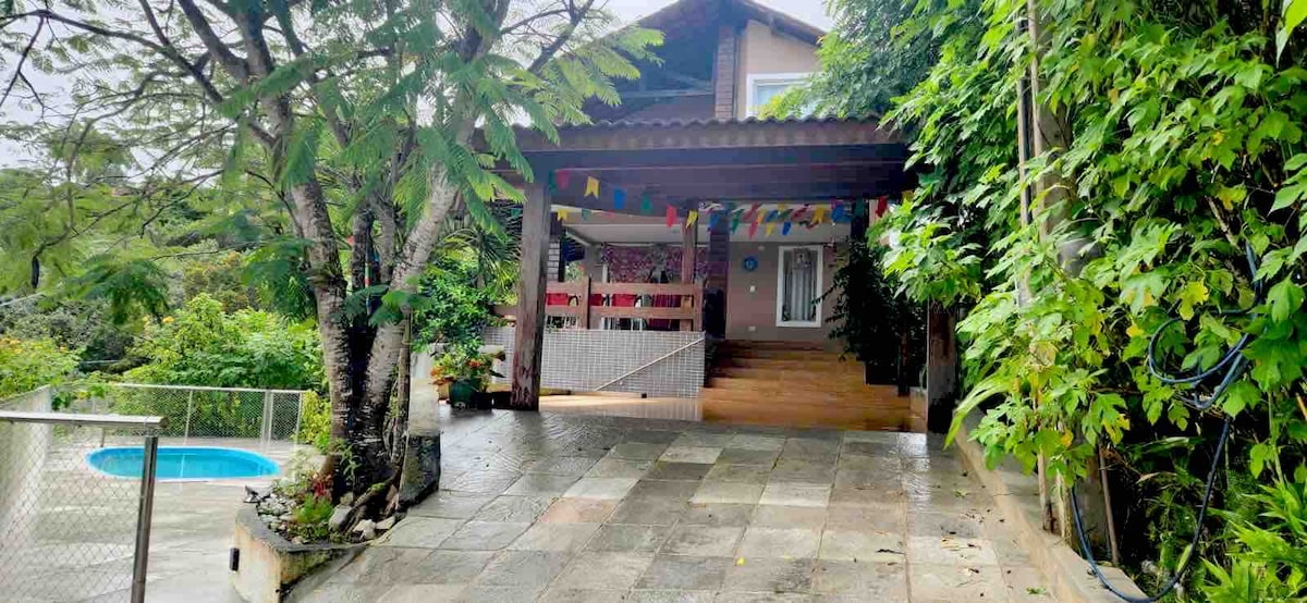 Ontspan met het hele gezin in dit rustige spel om te verblijven. Charmant en ruim landhuis, perfect om te ontspannen door vanaf het grote glazen balkon naar het panoramische uitzicht op de bergen te kijken. Rustige ruimte om samen met uw gezin en uw huisdieren van te genieten. * Het huis ligt in het condominium ' Recanto da Colina'.