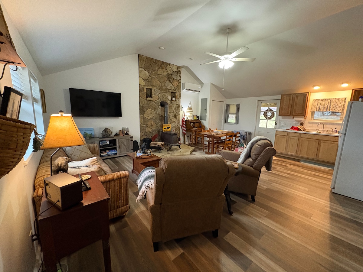 Stone 's Throw Cabin is gelegen in de Blue Ridge Mountains op ongeveer 1 1\2 hectare op zijn eigen terrein. Het is de perfecte, privé, kleine rustieke vakantiehut met een eigen oprit. Slechts 40 seconden rijden naar de New River Public-toegang waar je kunt genieten van vissen, tubing, kajakken, enz., Het kleine stadje Independence ligt op slechts 15 minuten afstand, handig voor boodschappen, restaurants en verhuur van kajaks, enz., Bezoek Grayson Highlands National Park om te wandelen en wilde pony 's te spotten.