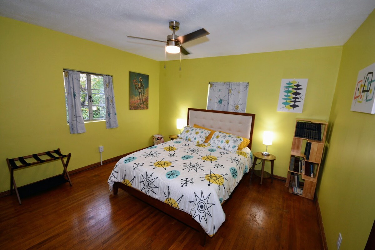 Stap in een ruimtevaartretraite met vintage flair en modern comfort. Deze bescheiden woning uit het midden van de eeuw, met de hand gebouwd door een lokale staalarbeider, heeft een nostalgische inrichting geïnspireerd op het atoomtijdperk in combinatie met het gemak van vandaag. Gelegen in Worthington, Kentucky, waar het leven in een rustiger tempo verloopt. Neem een fiets mee, want het huis ligt direct aan een fietsroute van ongeveer 16 kilometer. Of je hier nu bent voor werk of een nostalgisch uitje, onze atoomverblijfplaats biedt geschiedenis, gastvrijheid en hart.