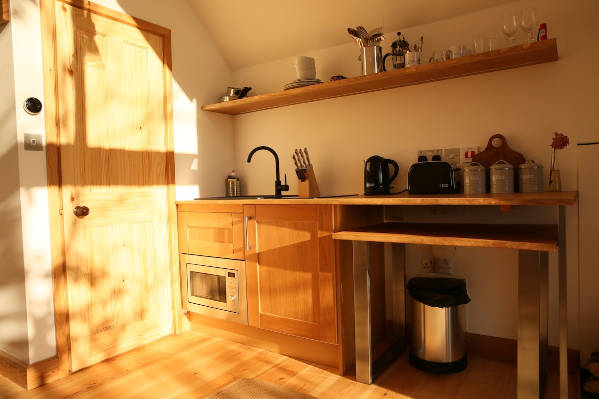 Genesteld in de bomen met een prachtig uitzicht op een verborgen vallei. Er zijn verrekijkers aanwezig om te genieten van de schuur, vliegers, herten, vossen, dassen, konijnen, hazen, eekhoorns, stoats en wezels die de vallei bewonen. Alle houten lodges zijn met de hand gebouwd door lokale ambachtslieden; de armaturen, fittingen en bedden zijn gemaakt van een specifieke soort 'wiggly' hout. Een volledig uitgeruste keuken, sfeerverlichting en een houtkachel maken de romance van deze prachtige luxe schuilplaatsen compleet