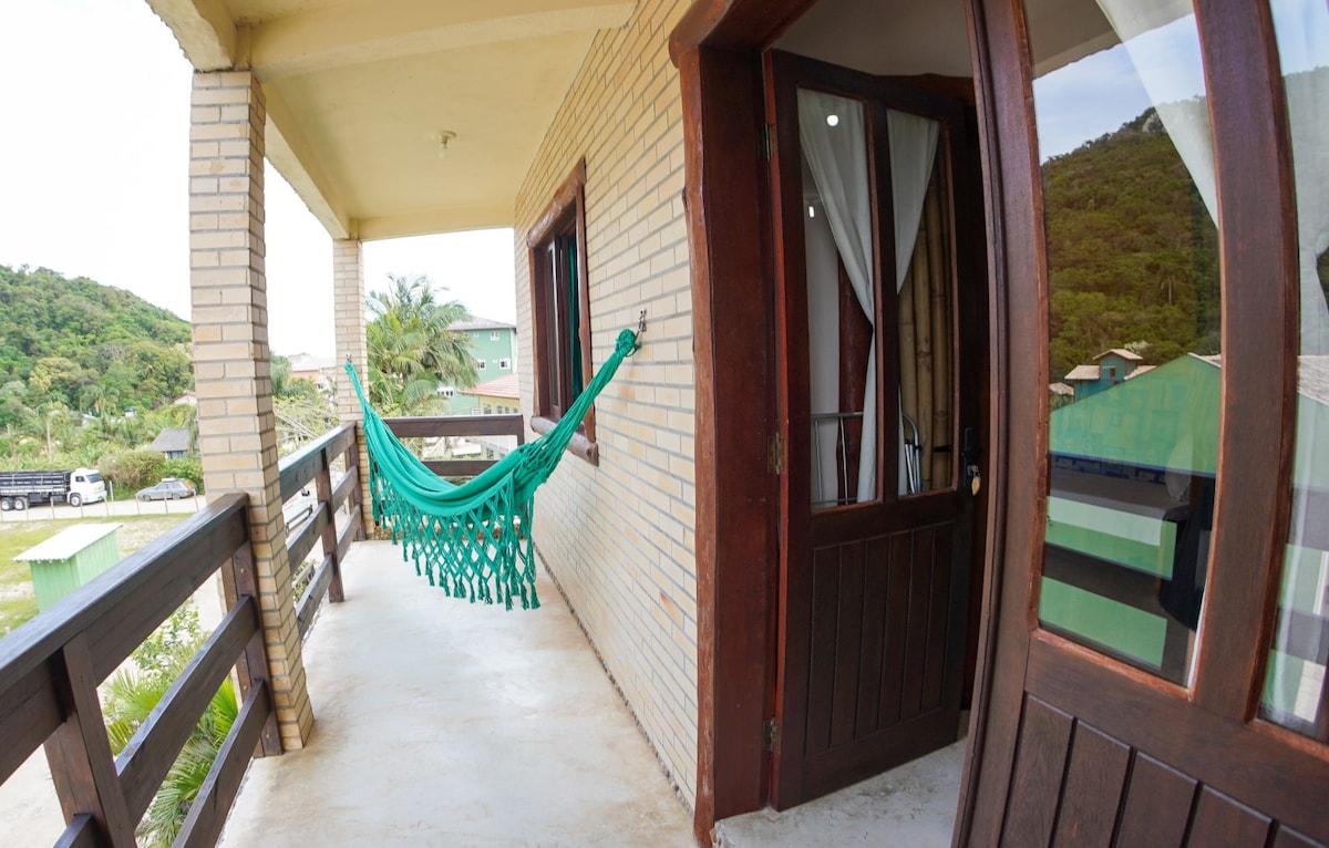 Morada Girassol ligt in het centrum van Guarda do Embaú, naast het GuardaGosto Restaurant. Onze accommodatiemogelijkheden zijn ideaal voor diegenen die graag dicht bij het strand willen verblijven, lokale winkels en de beste restaurants in de regio. De appartementen zijn uitgerust met een ventilator, smart-tv met open zenders, elektrische douche en balkon. ZONNEBLOEM 1 - Suite met tweepersoonsbed + extra bed, koelkast, kitchenette en balkon met uitzicht op het centrum.