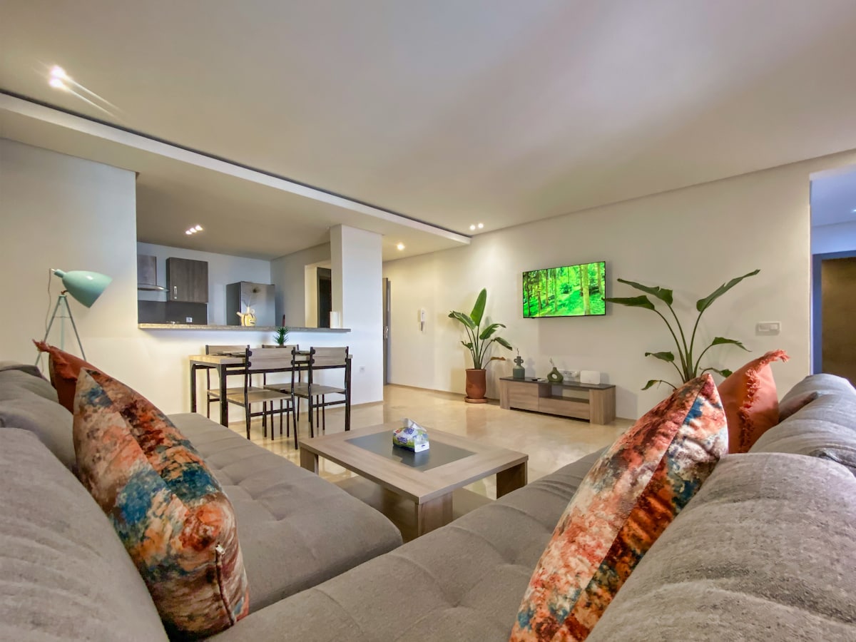 Un appart tout confort - Résidence neuve avec ascenseur et accès sécurisé - Appart fonctionnel, moderne et joliment décoré - Clim, Wi-Fi, TV ... pour un séjour agréable 🏊♂️ Les atouts de votre séjour - Piscine en rooftop avec vue dégagée, idéale pour vous détendre après vos journées de visite - Quartier central et animé, parfait pour découvrir Marrakech - A proximité immédiate des commerces, et lieux de vie 📌 À savoir Nous respectons la législation marocaine (voir règlement intérieur).