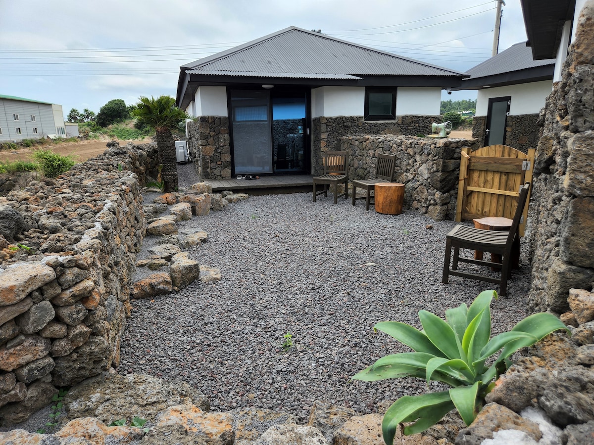 Haeilwol, gelegen aan de oostkant van het mysterieuze eiland Jeju, lijkt erop dat de zee van Jeju deel uitmaakt van Haeilwol, niet het uitzicht op zee. Je kunt de geest van Jeju voelen in de stenen muur rond Haeilwol, en in Ville die zich uitstrekt van de tuin tot de zee. Jeju Haeilwol is door het Bureau voor Toerisme van Jeju aangewezen als een geohuis omdat het het gevoel van Jeju behoudt. Zelfs Jeju-mensen zijn verrast als ze naar Haeilwol komen en complimenteren over de Jeju-achtige schoonheid die Haeilwol heeft. ^ ^ Ik durf te zeggen dat het de beste plek in Jeju is waar je kunt genezen en herinneringen kunt maken met je dierbaren. ^ ^