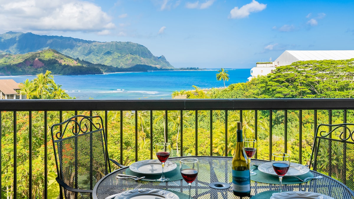 Onze Hanalei Haven is onlangs gerenoveerd en is de perfecte uitvalsbasis voor jouw North Shore Kauai vakantie! Voorzien van een volledig uitgeruste keuken, airconditioning, een eigen lanai met uitzicht op de jungle en de Hanalei Bay, snelle wifi, smart-tv, wasmachine-droger en toegewezen parkeergelegenheid. Gelegen aan de overkant van de oceaan bluf en binnen het spectaculaire uitzicht op Hanalei Bay - ideaal om een Bali Hai zonsondergang te zien. De beste snorkel- en surfstranden van Kauai - Tunnels en Hanalei Bay liggen op slechts een klein stukje rijden!