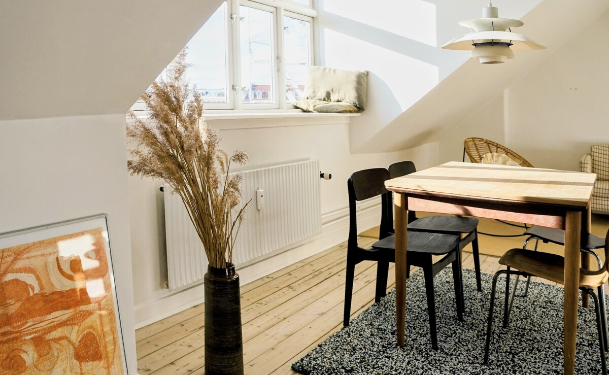 Enjoy life in this peaceful and centrally located accommodation with its own entrance. You have your own kitchen, bathroom, toilet, a loft with a double bed, and a sofa bed on the ground floor that can be converted into another double bed with room for two. There is also a private courtyard - all just a stone's throw away from Lyngby's vibrant shopping and cafe scene. It's only 15 kilometers to Copenhagen, and a 16-minute train ride away.