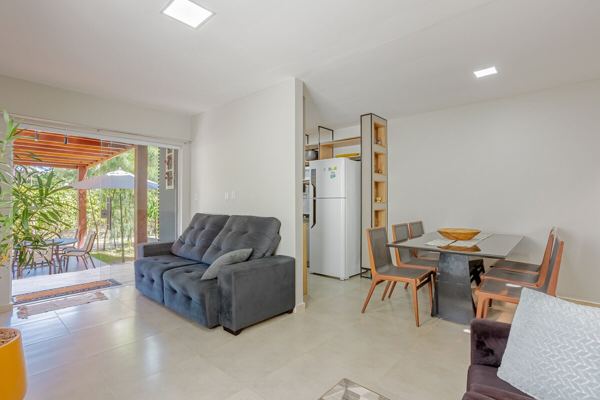 Omarm eenvoud in deze rustige, goed gelegen plek. Woonwijk Oahu, modern, rustiek, comfortabel, praktisch, rust, yoga, bars voor buitentrainingen, 4 zwembaden en een surrealistisch uitzicht op de prachtige zee van Imbassaí. Dicht bij de beste restaurants, 950 m van het strand, 2 overdekte garages. 1 tweepersoonsbed met uitzicht op zee 2 eenpersoonsbedden met optie voor tweepersoonsbed Optioneel: 2 extra bedden (voor kinderen) 15 km naar Praia Do Forte 74 km luchthaven 15 km naar Costa do Sauipe Welkom!