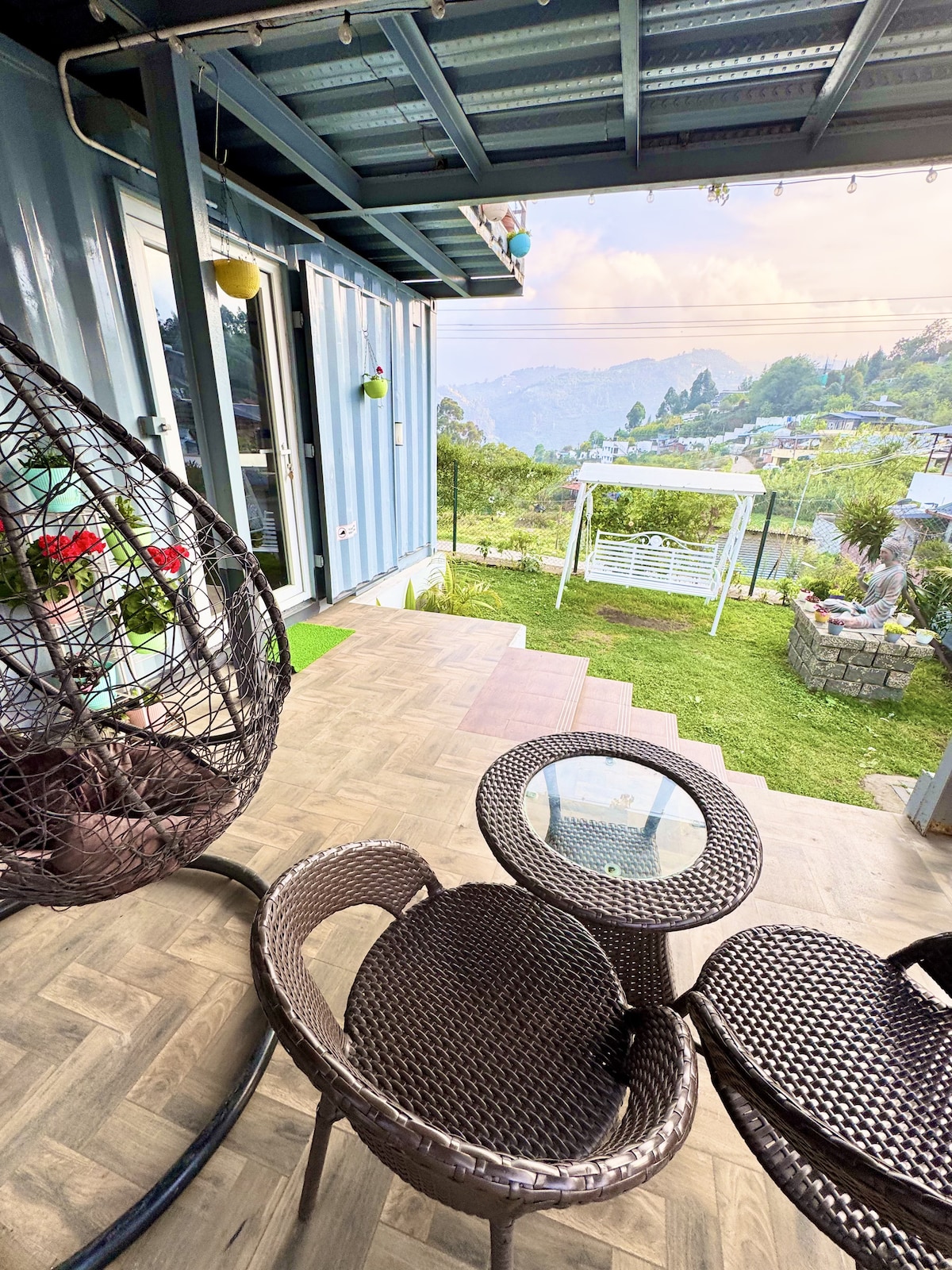 Enjoy a cozy stay in our thermal-insulated prefabricated studio container room with beautiful surroundings. A safe and comfortable space for solo, couples, friends, and women travellers. * 24/7 cctv surveillance * complimentary 100 mbps wifi * continuous hot water * inverter power backup * private parking * smart tv * electric kettle * campfire spot (extra charge) * bbq grill (extra charge) Our on-site caretaker is available to assist guests, and homemade food is served from 7 am to 8 pm.