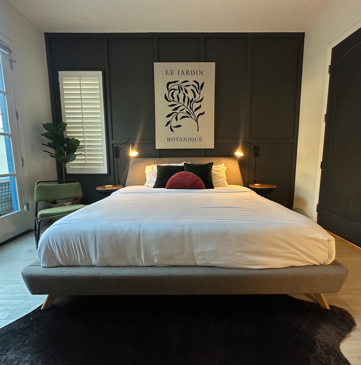 Onze Legacy Palms kingsize bed studio suite is een onlangs gerenoveerde, ruime en lichte ruimte met een moderne Californische woestijnvibe. Franse deuren openen naar een eigen balkon met uitzicht op het weelderige villaterrein en de waterfonteinen. De suite beschikt over een smart-tv met eersteklas kabel, minikoelkast, magnetron en een Keurig-koffiezetapparaat, een eigen badkamer met een bad en een aparte douche. Het gemeenschappelijke terrein beschikt over 12 verwarmde zwembaden en spa 's, een fitnessruimte, hangmatten, grills en nog veel meer!