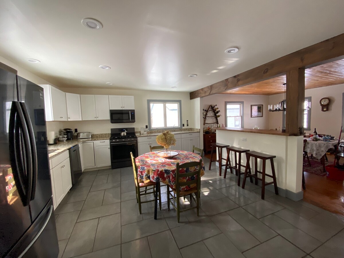 Geniet van de schoonheid van de Adirondacks en geniet van het comfort van een zorgvuldig ingericht huis dat ontspanning bevordert. De eerste verdieping heeft een open concept en beschikt over een ruime keuken, eetruimte en een gastvrije woonkamer met een hoog kathedraalplafond en een open haard. Gezellig en lees bij het haardvuur, tv kijken of wat bordspellen spelen. Als de zon ondergaat, geniet je van een ontspannen duik in een oversized bubbelbad en trek je dan terug in een van de vier slaapkamers boven.