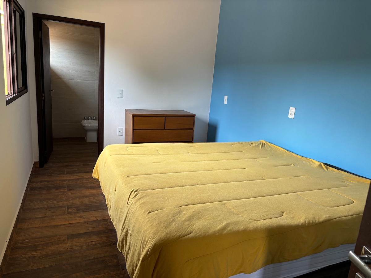 Perfeita para festas, finais de semana ou confraternizações de empresa! Para dormir, apenas uma cama de casal! Para festas, cabem mais pessoas ✨ A edícula conta com: 🛏️ 1 quarto com suíte 🚻 1 banheiro externo 🔥 Área gourmet com geladeira, fogão e churrasqueira 🍽️ 5 jogos de mesas e 21 cadeiras de plástico 🪵 4 bancos de madeira no piso térreo e 3 no mezanino 💦 Ambiente amplo, aconchegante e com piscina — ideal para momentos de lazer e comemoração!