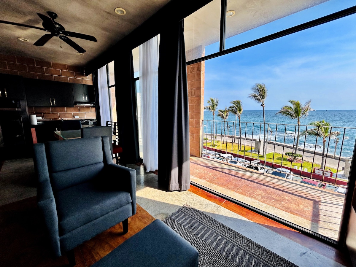 Een favoriet van gasten voor het beste uitzicht in de stad, centraal gelegen aan het strand, tussen de meest gewilde appartementen in Mazatlan, met een onberispelijke verhuurgeschiedenis van zeven jaar. Hoeksuite op de 14e verdieping, geweldig panoramisch uitzicht op de oceaan, het strand en de stad. Loop naar het zandstrand, de Malecon Boardwalk en restaurants. Starbucks, OXXO-winkel en Pizza Hut bevinden zich op de eerste verdieping. Zwembad, fitnessruimte, parkeerplaats en 24/7 beveiliging... Een absoluut indrukwekkende ervaring in een appartement aan het strand.