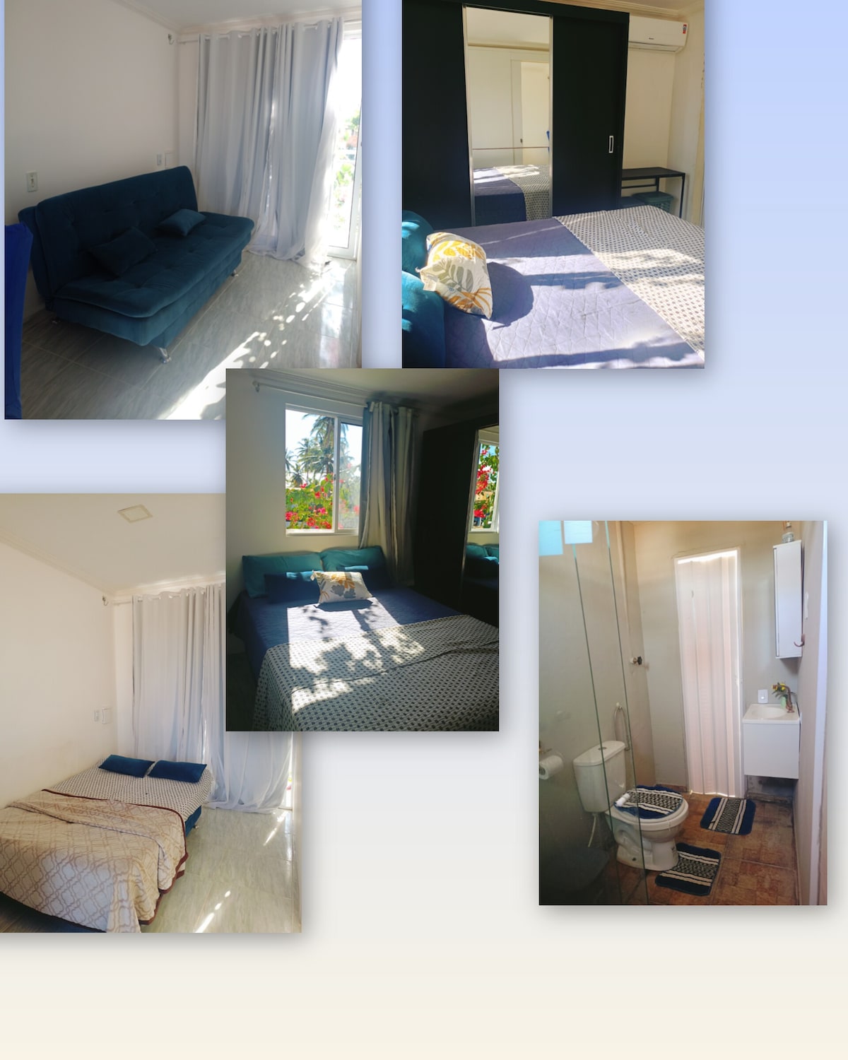 Goed gelegen appartementen, in de buurt van het centrale plein van Flecheiras (550 m), op 600 meter van de zee. Elk appartement heeft 02 slaapkamers, een eigen badkamer, woonkamer, keuken en garage(1 ruimte). • Beddengoed en bad zijn beschikbaar. - Gezellige kamers met airconditioning, zijnde een met een queensize bed en een ander normaal stel, beide met ruimte voor hangmatten. - Keuken uitgerust met fornuis ,blender, koelkast, magnetron, sandwich maker, bestek en servies. - Charmante kamer met tv , intrekbare bank en 1 ruimte voor hangmat.
