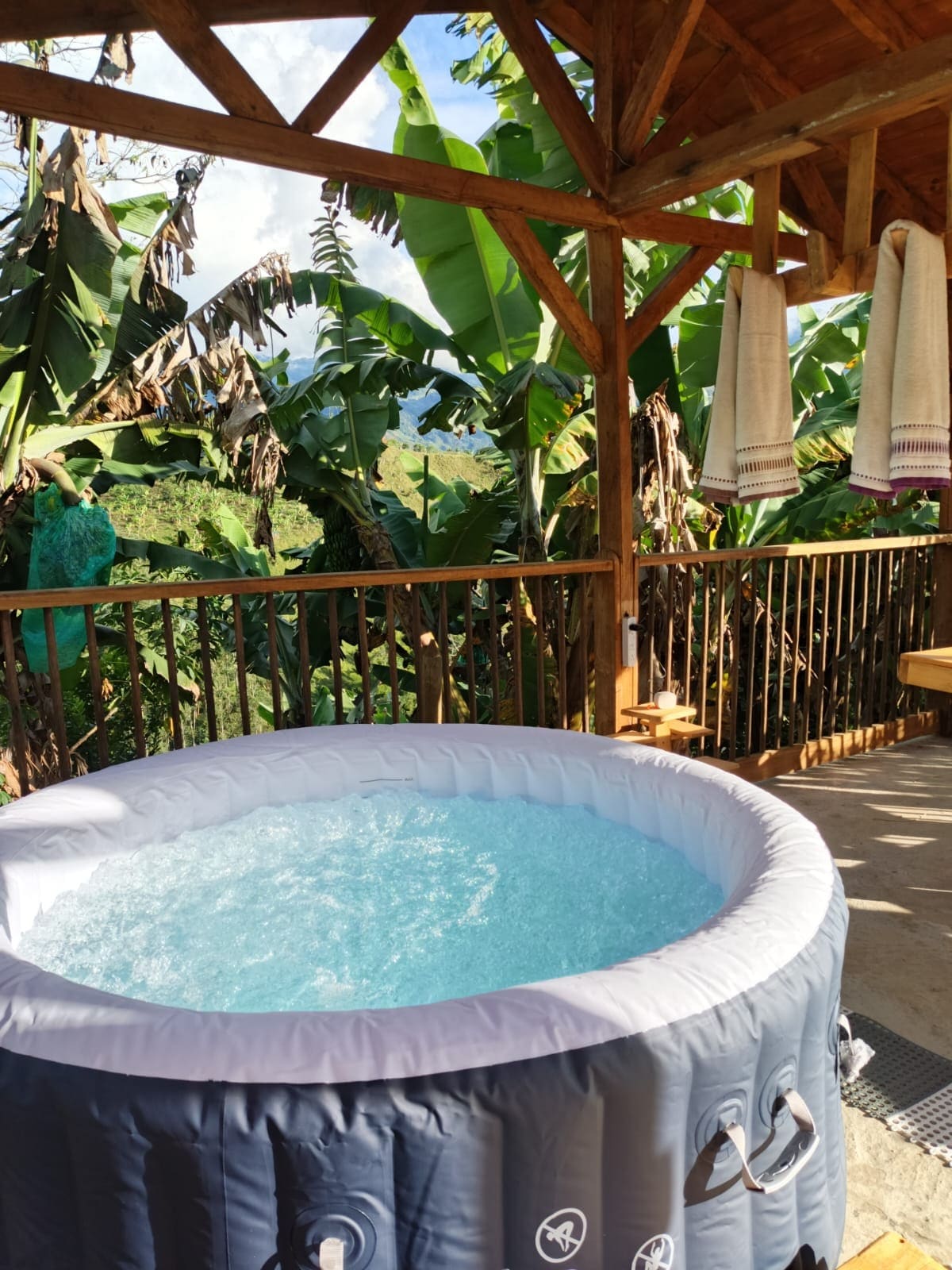 Geniet van een welverdiende pauze met alle voorzieningen die je nodig hebt te midden van de natuurlijke schoonheid van de bergen. Onze hut is een oase van rust, waar je je kunt onderdompelen in een ontspannende jacuzzi omringd door koffievelden, ideaal om te delen met vrienden of je partner. Elke dag word je wakker met het zoete vogelgezang en de geur van verse koffie. Van hieruit kun je genieten van een adembenemend panoramisch uitzicht op de gemeente JardĂn.