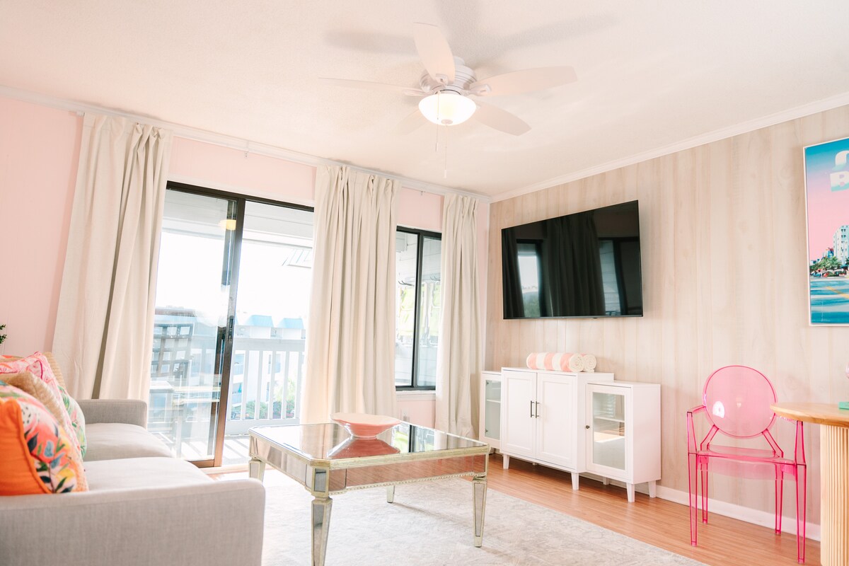 Luxe en kleurrijk, Palm Peach 2 is niet je 'Basic Beach' -huis. - Eigen toegang tot het strand - Slaapplaatsen voor 6 personen - Alleen voor leden zwembad en pickleballbaan - Deze suite met uitzicht op het strand beschikt over snelle wifi met smart-tv 's in de grote kamer en slaapkamer. - Balkon met uitzicht op de oceaan en het zwembad. - Palm Peach 2 ligt op een korte wandeling van enkele van Tybee 's beste restaurants en winkels, de vuurtoren en het Tybee Island Marine Center.