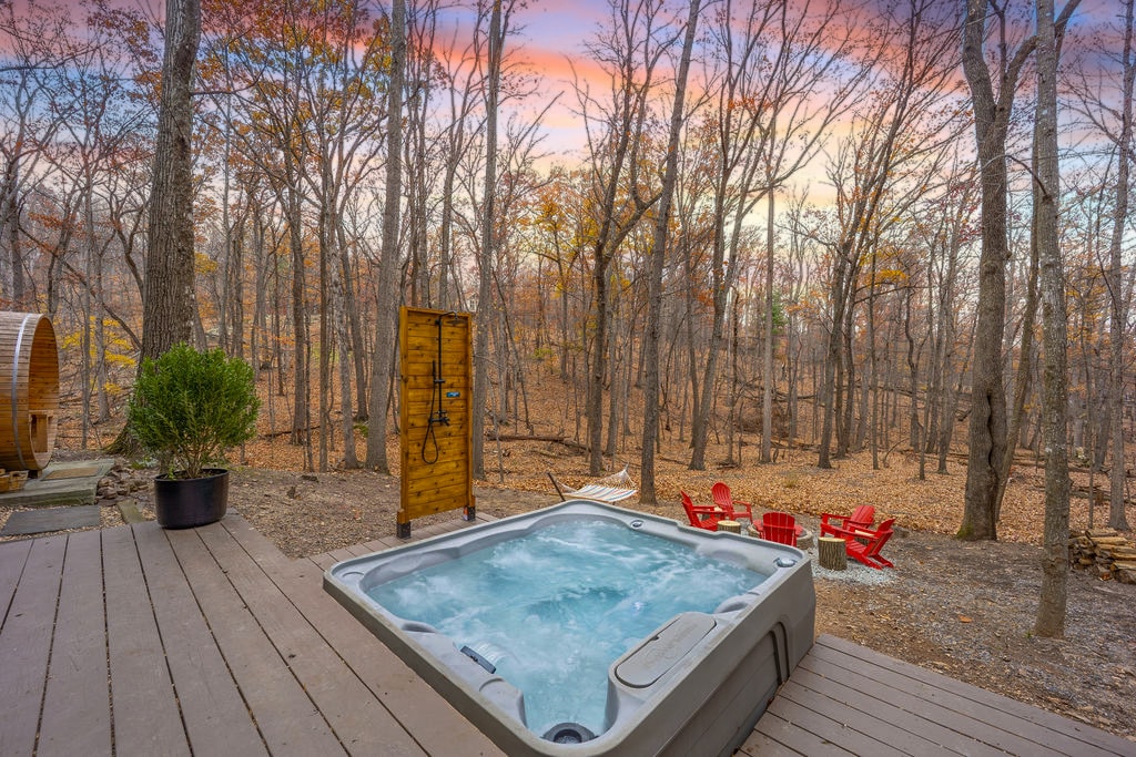 Vier je speciale moment in chique elegantie en 5-sterrenvoorzieningen alleen voor volwassen stellen. Je verdient de Sunset Rouge. Het is een bestemming in een ontspannen en romantische omgeving om te ontsnappen aan de angst van kinderen, de stad en het werk. Laat de leuke inrichting en het panoramische uitzicht de schrijver en kunstenaar binnenin inspireren. Overdag met adelaars op ooghoogte. Kijk 's nachts naar de hemel om een vallende ster te zien. Binnen 2 mijl is Lake Shannondale met toegang tot het strand door de Mountain Lake Club.