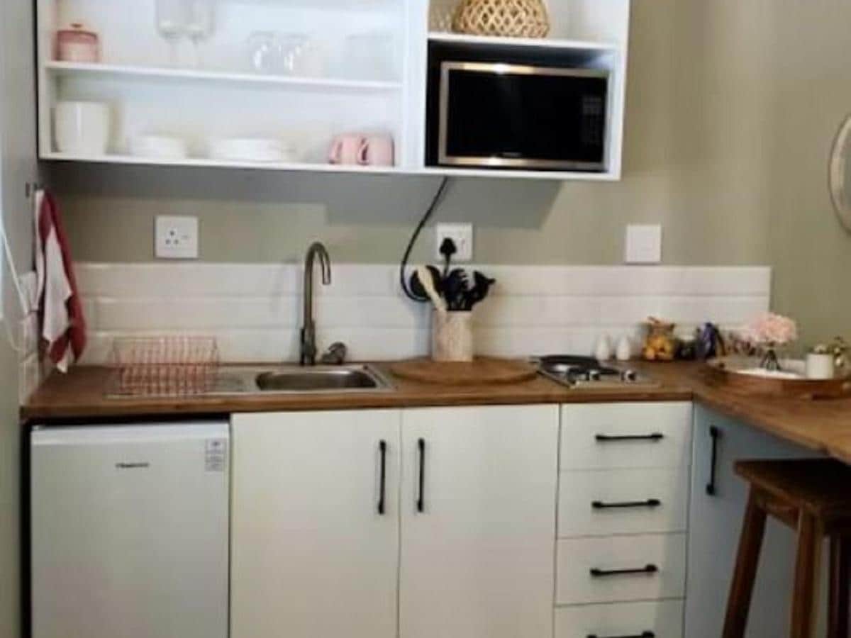 Dit chalet met airconditioning heeft een queensize bed, een en-suite badkamer met een douche, een kaptafel en een kitchenette met een fornuis, een magnetron, een barkoelkast en een waterkoker. Het chalet heeft een eigen patio met een picknicktafel en braai.