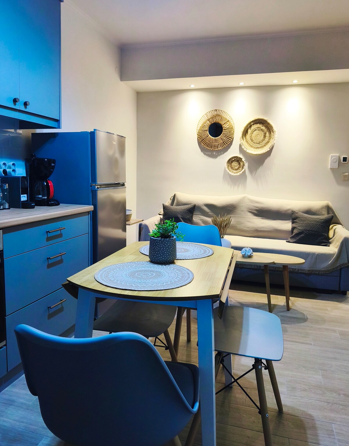 Fenestra Mare is een rustig toevluchtsoord in Chios voor koppels, gezinnen en thuiswerkers. Het ligt op slechts 5 minuten rijden van de stad en het strand van Agia Paraskevi en beschikt over een eigen parkeerplaats, een balkon met uitzicht op zee, volledige airconditioning, twee gezellige slaapkamers met tweepersoonsbed, een volledig uitgeruste keuken, een eettafel, een woonkamer en een speciale werkruimte. Of je nu ontspant op vakantie of op afstand werkt, deze woning biedt een rustige, praktische en stijlvolle uitvalsbasis om te genieten van alles wat het eiland te bieden heeft.