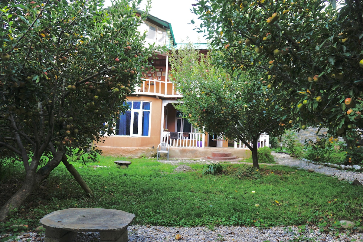 Een huis in het hart van de Himalaya, weg van de drukte van de stad. Geniet van een sereen uitzicht op de vallei, omringd door pruimen, appel, persimmon en andere bomen. Een rustige locatie die perfect is voor een ontspannende vakantie of work-ation. Word wakker met een prachtig uitzicht op de bergen, geniet van een ontspannende dag met het lezen van een boek op het balkon of verken de vele nabijgelegen bezienswaardigheden en avontuurlijke activiteiten; deze locatie biedt voor elk wat wils.