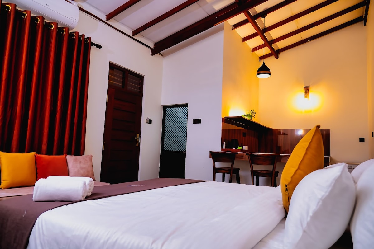 Welcome to our budget-friendly hotel in the heart of Negombo, offering comfort and local charm. Our cozy rooms feature queen-size beds with spring mattresses, clean bedding, and private bathrooms. Enjoy the serene outdoor dining area overlooking the lagoon and colorful fishing boats, providing a true taste of Negombo’s fishing culture. Conveniently located within walking distance of the Negombo bus stand, major tourist attractions, ATMs, supermarkets, and bars, our hotel ensures a relaxing stay.