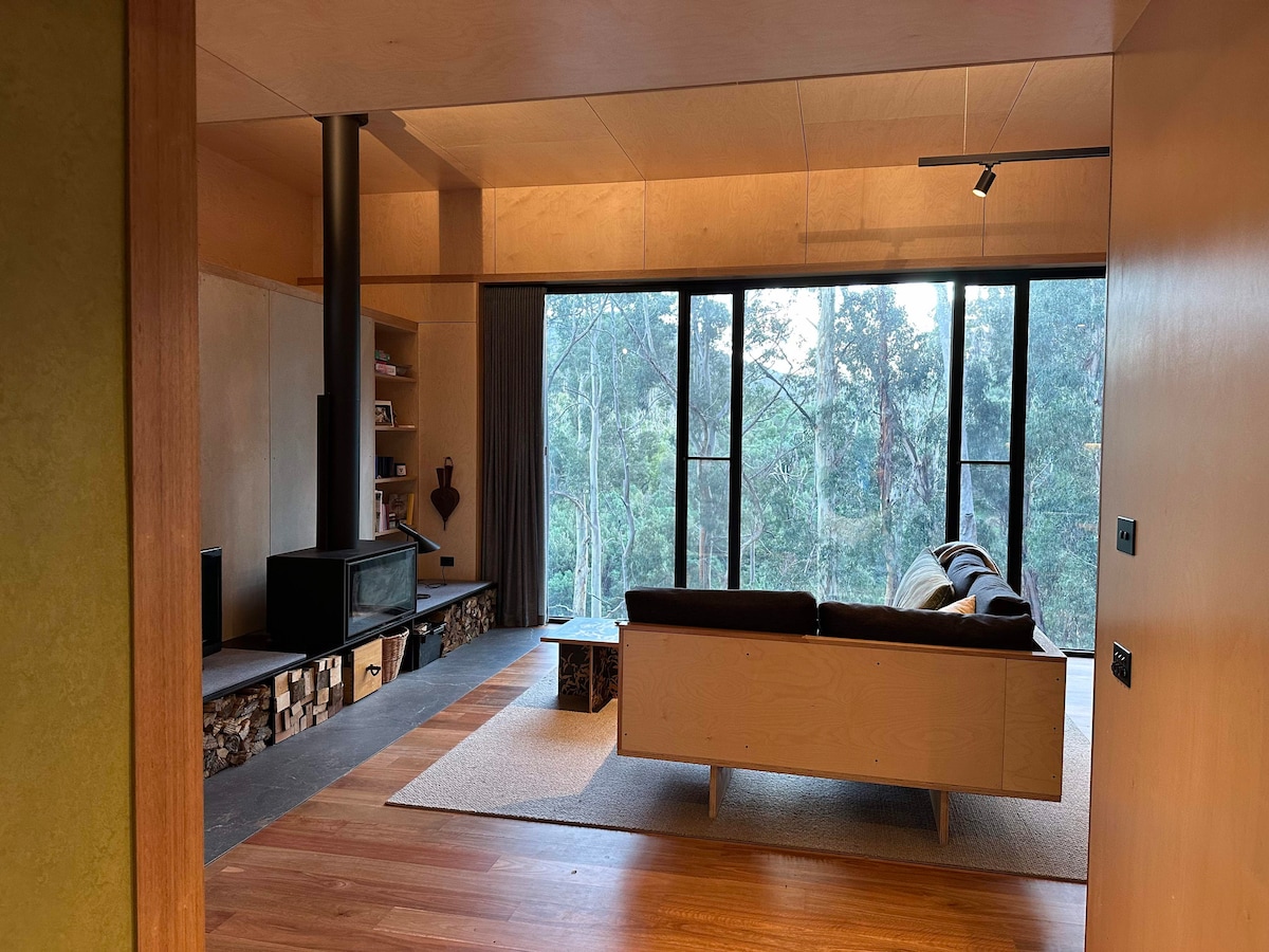 Imagine waking to kookaburras calling, sipping your morning coffee surrounded by birdsong and forest views, then exploring ancient rainforests before returning to your peaceful hilltop sanctuary. Welcome to Barham Hill Eco Retreat. Perfect for couples seeking a restorative getaway, our self-contained cottage sits on 40 acres of conservation bushland in the Otway foothills, just 5 minutes from Apollo Bay. Based on guest feedback, we've replaced one lounge with a dining table.