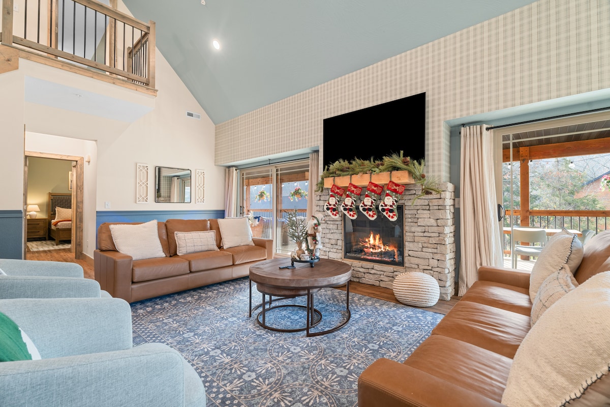 De Roark Lodge is een gezellige Branson, 2 slaapkamers met 2 kingsize bedden en 2 complete badkamerslodge met uitzicht op de zonsondergang in de bergen. Je zult snel merken hoe vredig en rustig het gebied is, maar je bent nog steeds op slechts 7 minuten rijden van Silver Dollar City en op 10 minuten van lokale restaurants en supermarkten. Geniet van je koffie op de achterkant afgeschermd op de veranda. Voor die koelere dagen zijn er 2 bubbelbaden en een open haard. Volledig gevulde keuken en slaapbank voor een verblijf van 6 personen. Geen trap! Ontspan, geniet, ontdek