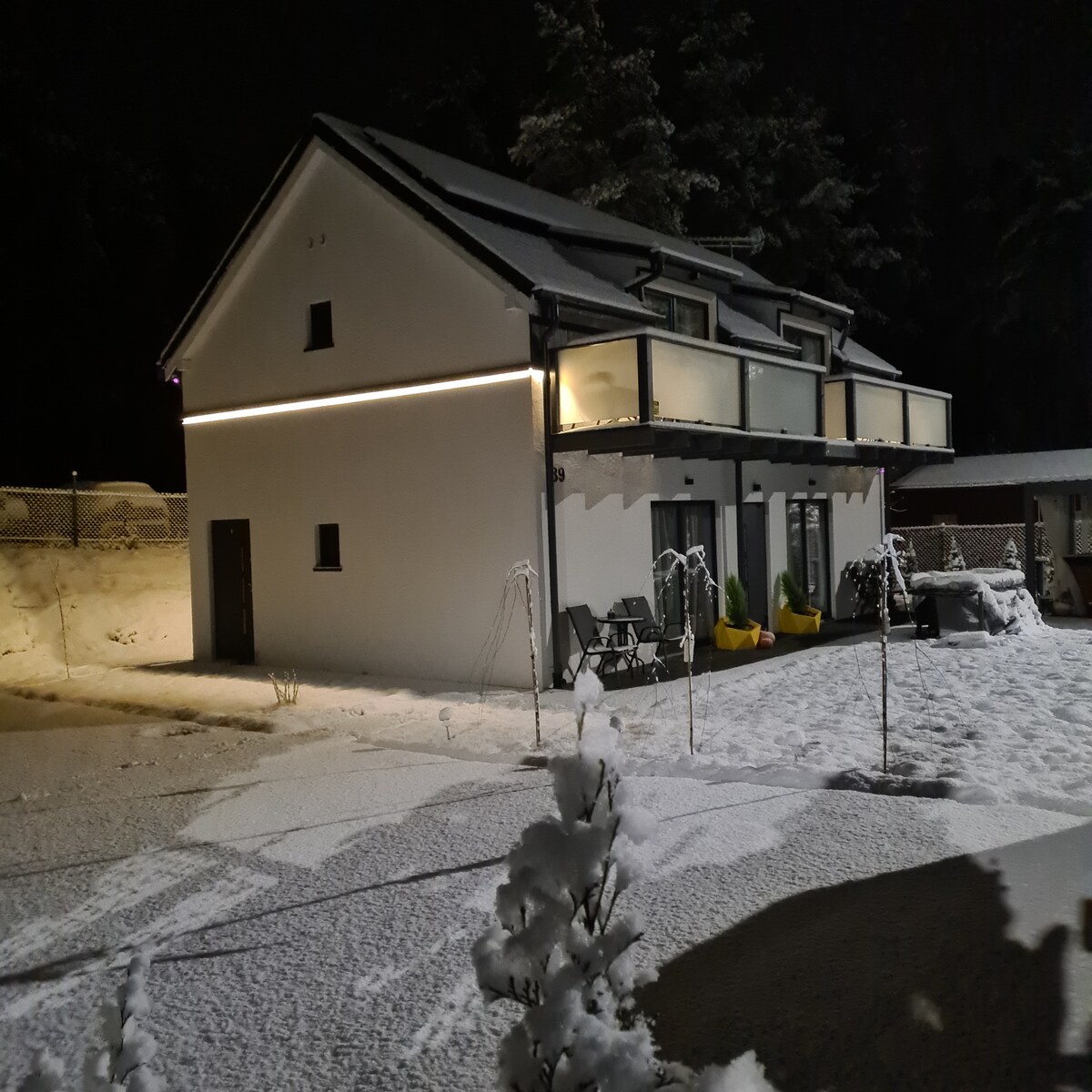 Czeka na Ciebie całoroczny dom z ogrodem zimowym, balią oraz sauną gdzie można miło spędzić czas lub zorganizować spotkanie w gronie rodziny bądź przyjaciół. Atutem z bliskim dostępem do jeziora (300m). Każdy apartament posiada własne wejście, łazienkę oraz dobrze wyposażony aneks kuchenny. Na piętrze domu apartamenty mają balkony z pięknym widokiem na las i okolice. Wewnątrz domu zapewniamy miejsce przy stole dla całej, dużej grupy (stół dla 14 osób) - to super alternatywa w razie niepogody.