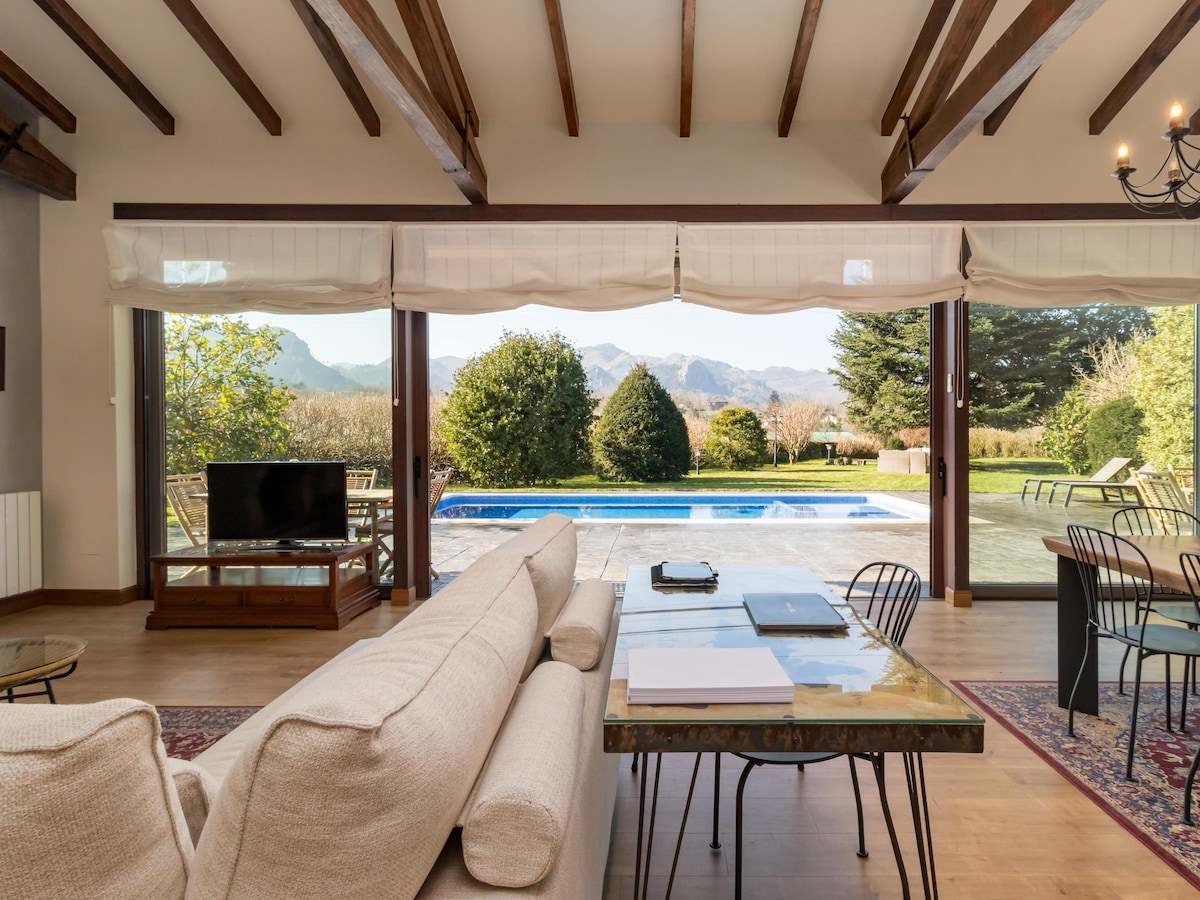 Exclusief huis van 100 m2. Gezellige, comfortabele en onberispelijke ruimte met een zeer zorgvuldig interieurontwerp, het optimaliseren van functionaliteit en esthetiek, zowel in meubels als in materialen en verlichting. Het heeft grote ramen die de ingang van veel natuurlijk licht en een panoramisch uitzicht op de boerderij mogelijk maken. Het is voorzien van alles wat je nodig hebt voor zes gasten. Het is omgeven door een tuin van ongeveer 300 m2 begrensd met een groeiende beukensluiting en uitgerust met een zwembad met bronwater.