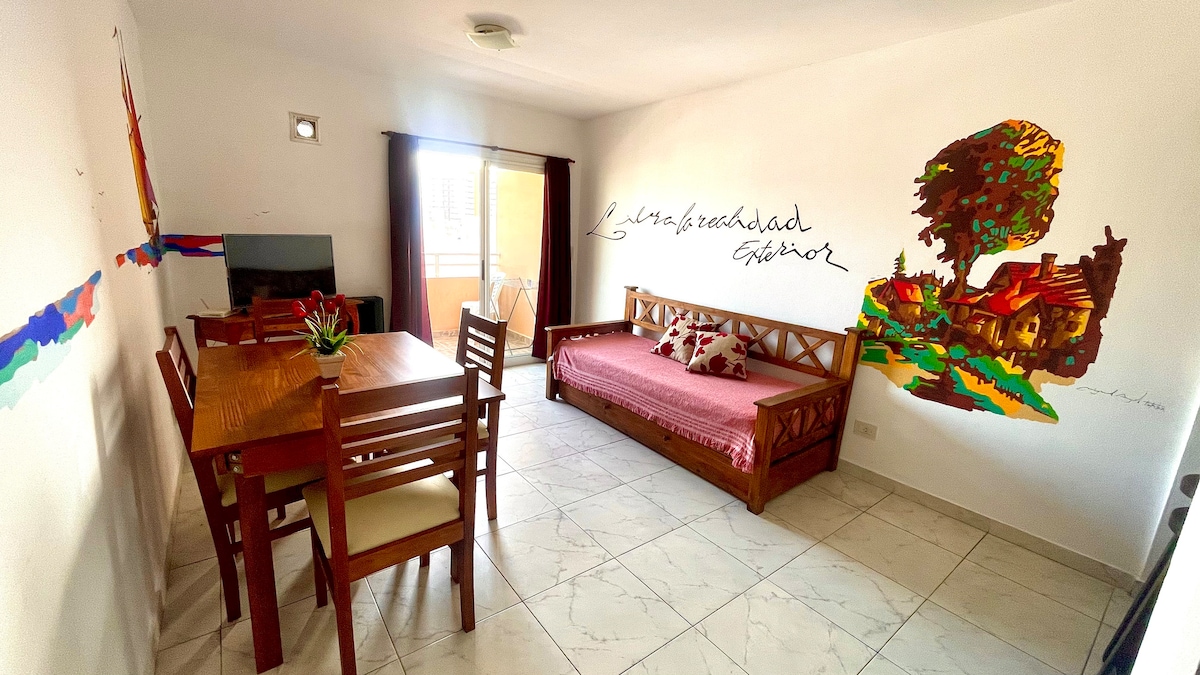DE DEPTO IS VOORBEREID VOOR 4 PERS, HEEFT EEN SLAAPKAMER MET EEN TWEEPERSOONSBED EN EEN ZEEBED VOOR 2 ANDERE PERSONEN. APARTE KEUKEN (AARDGAS, STROMEND WATER, VOLLEDIG SERVIES EN KOOKGEREI). WI FI 600 METER! 32INCH SMART-TV IN EETKAMER EN SLAAPKAMER (2). PLAFONDVENTILATOR IN WOONKAMER COM EN STAAN IN SLAAPKAMER. 4E VERDIEPING MET LIFT , PRACHTIG UITZICHT EN HELDERHEID. HET GEBOUW HEEFT EEN VASTE MANAGER. HET IS GELEGEN OP LA AV PRINCIPE 100 METER VAN DE ZEE EN 50 VAN DE VOETGANGER.